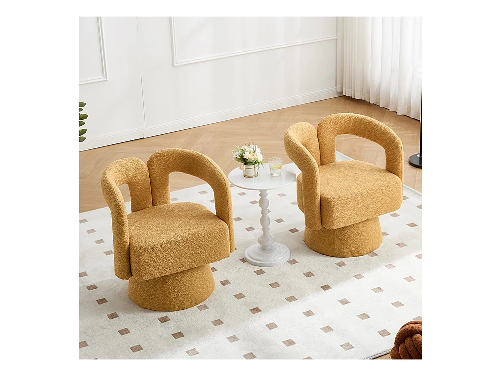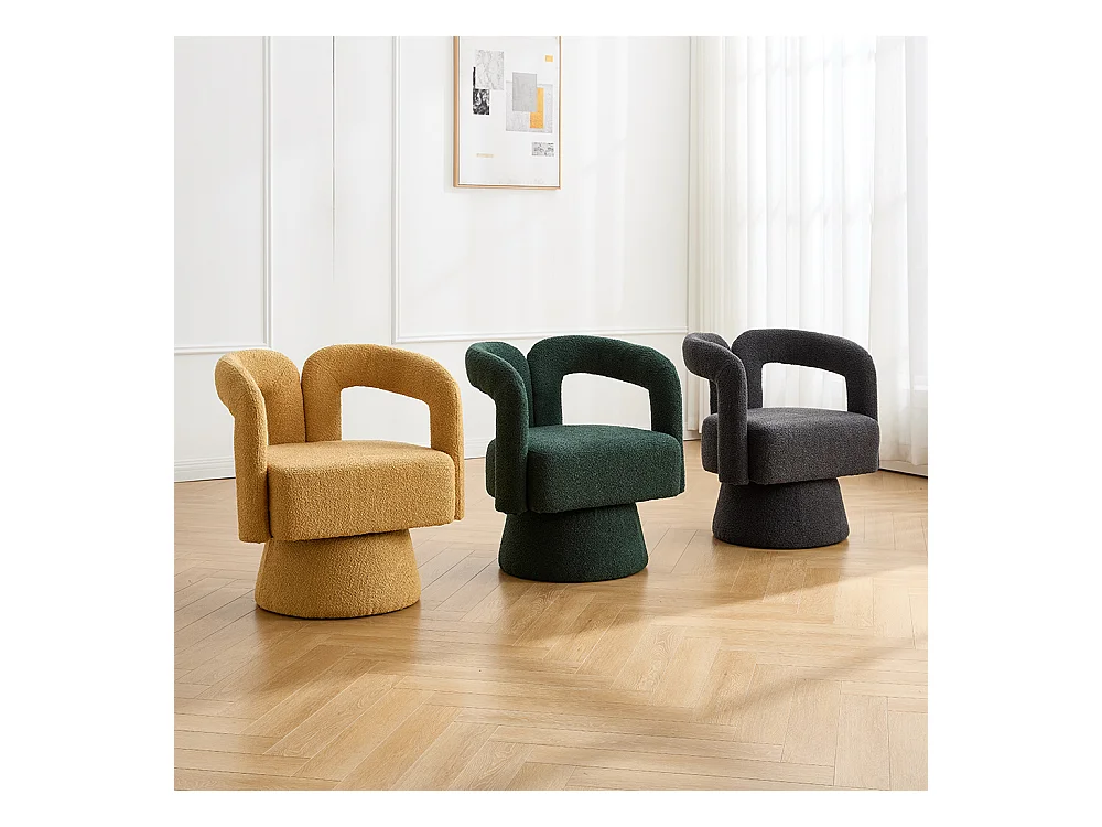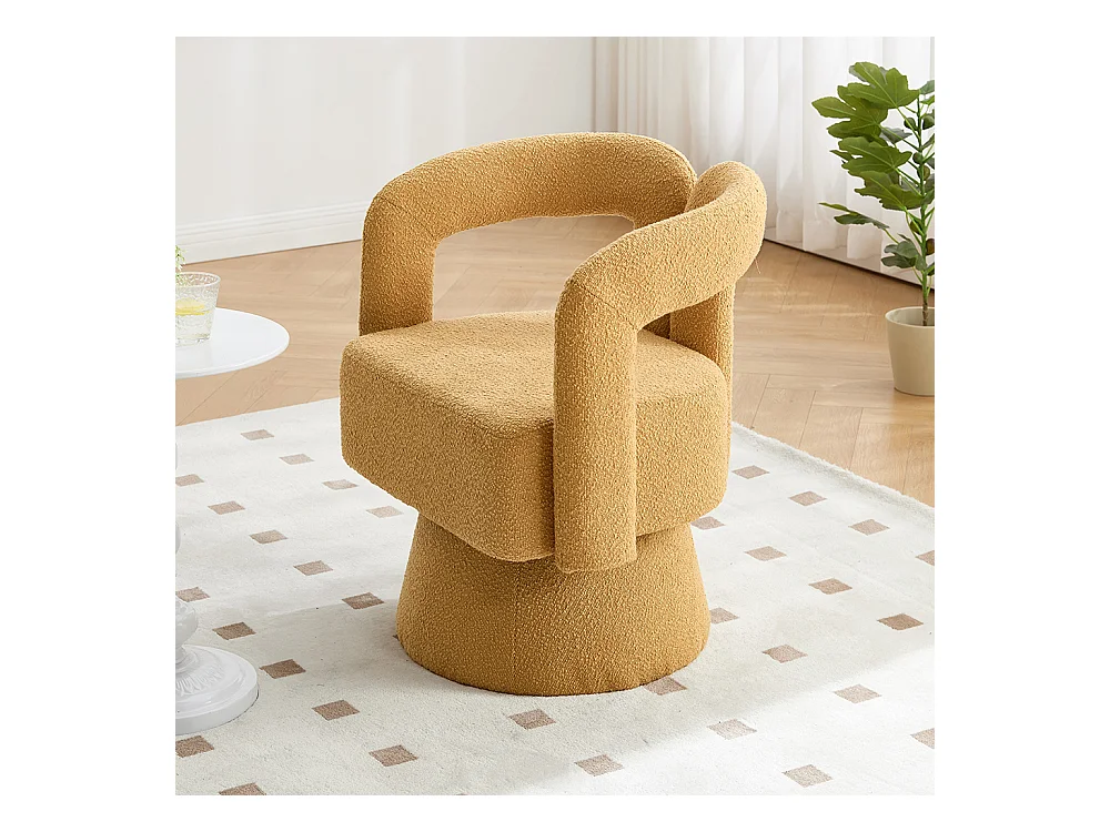 Fauteuil de salon pivotant en bouclette moutarde JENA
