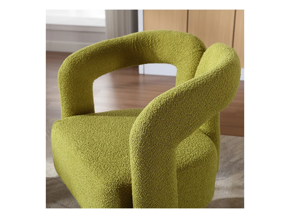 Fauteuil de salon pivotant en bouclette kaki JENA