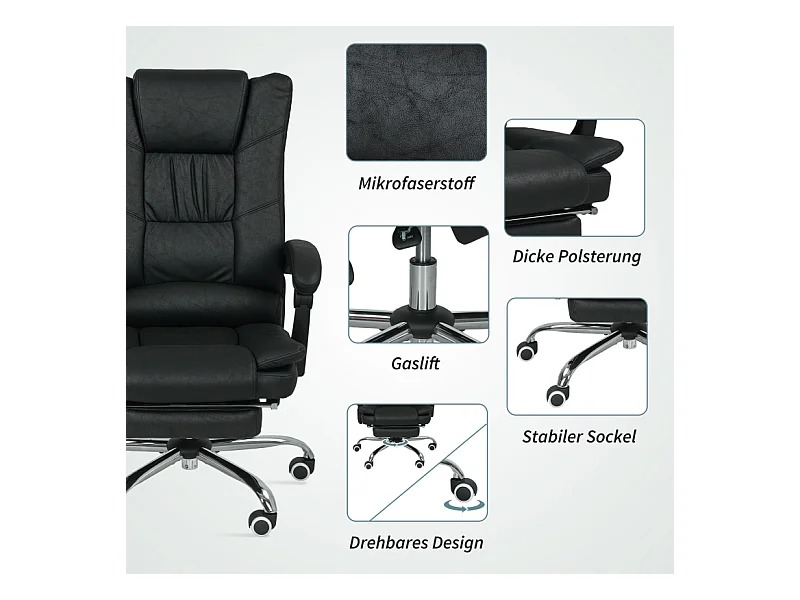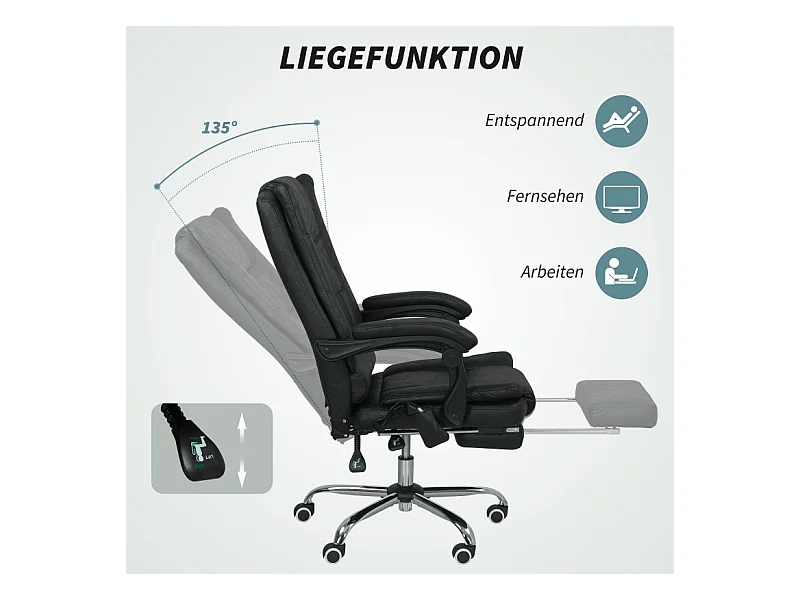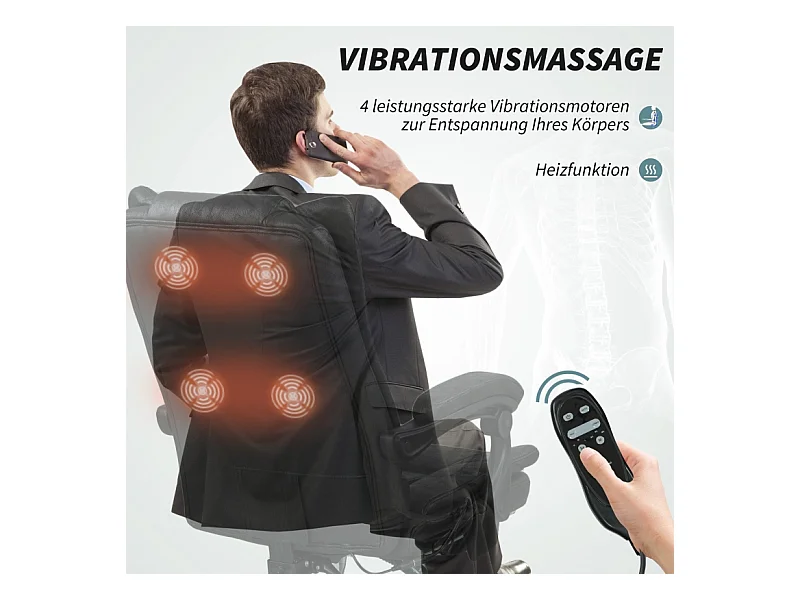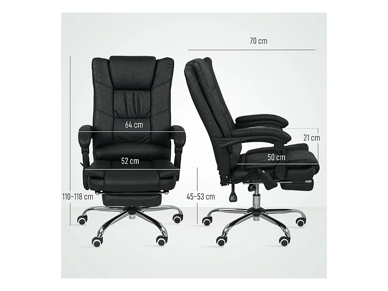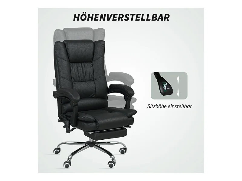 Fauteuil de bureau avec massage, inclinaison réglable, tissu microfibre, noir, (64x70x118 cm)