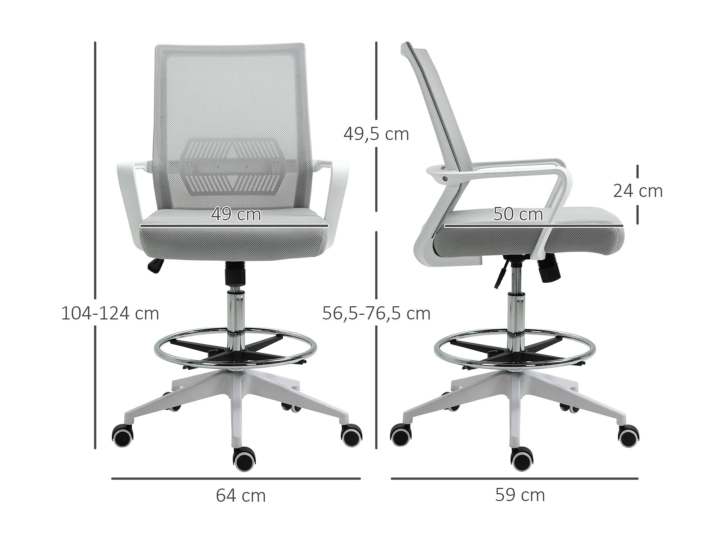 Fauteuil de bureau chaise de bureau assise haute réglable dim. 64L x 59l x 104-124H cm pivotant 360° maille respirante gris