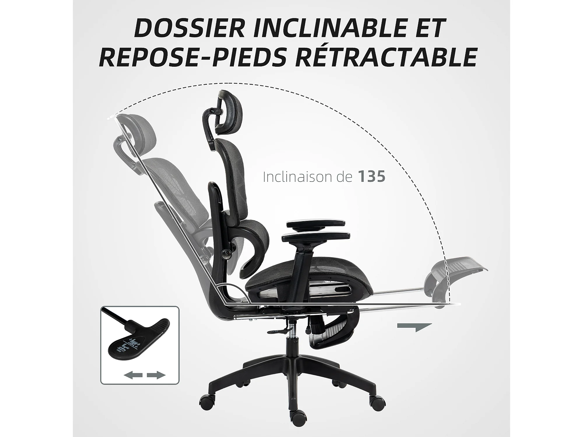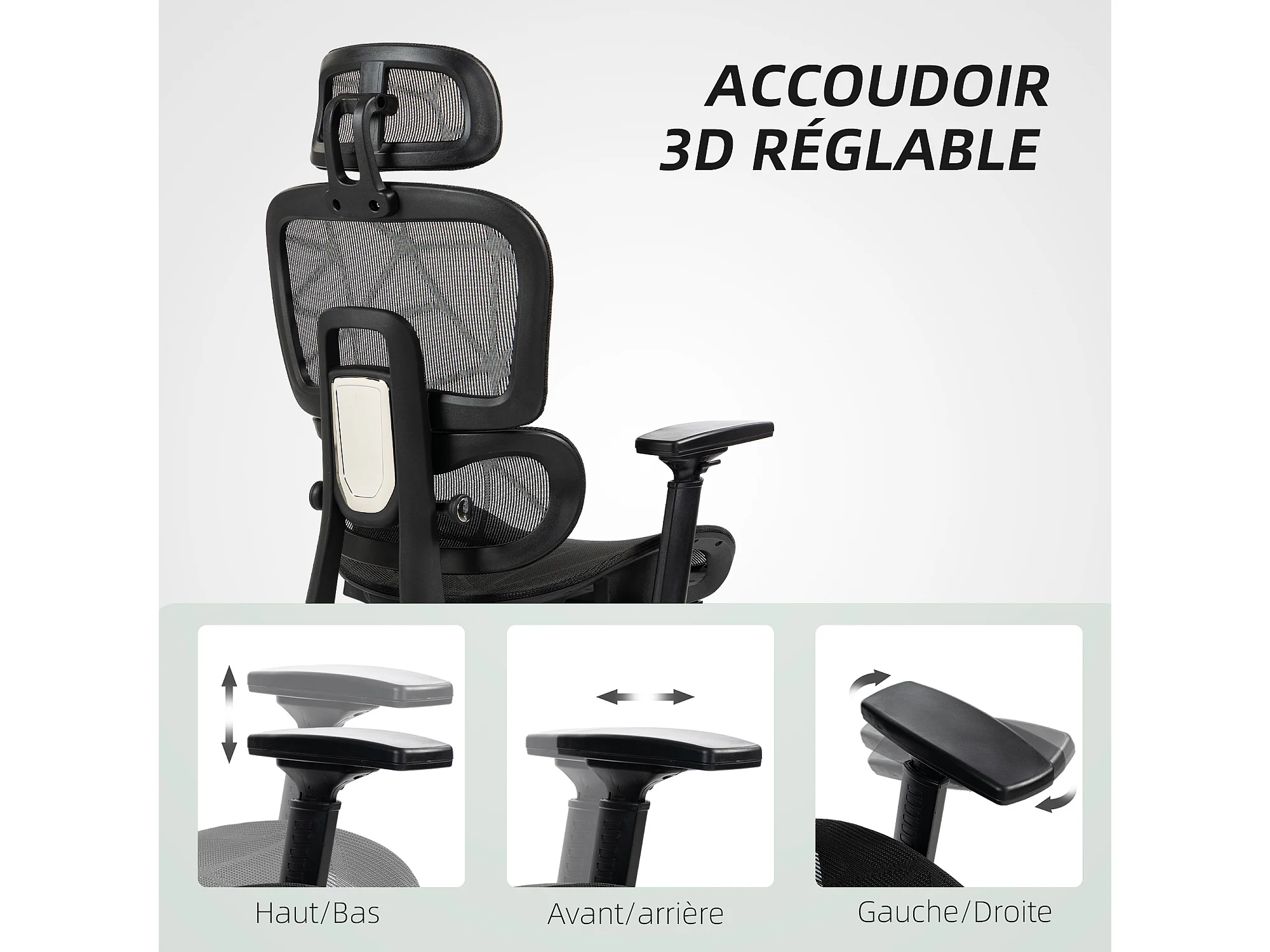 Fauteuil de bureau ergonomique grand confort entièrement réglable tissu maille noir