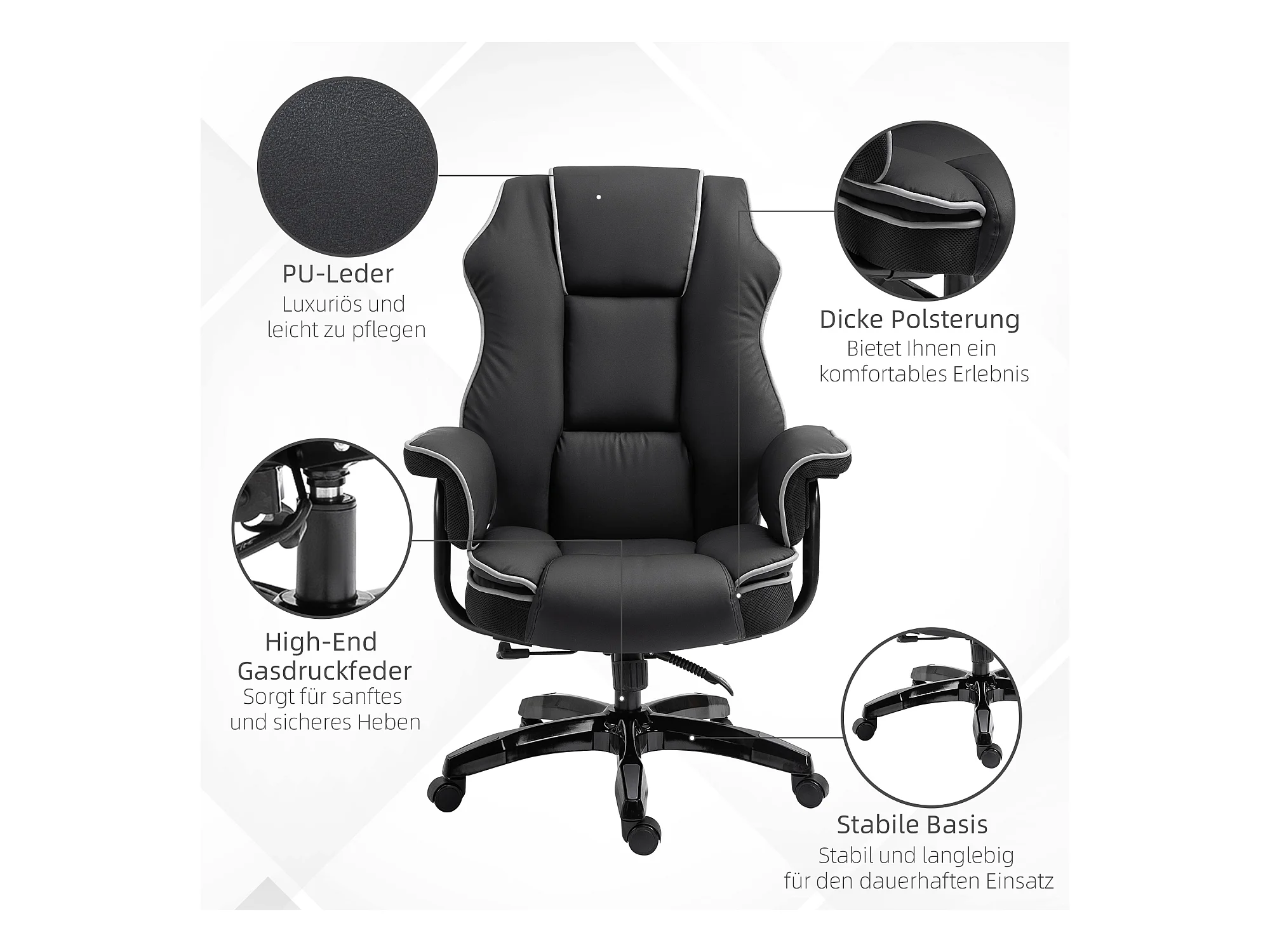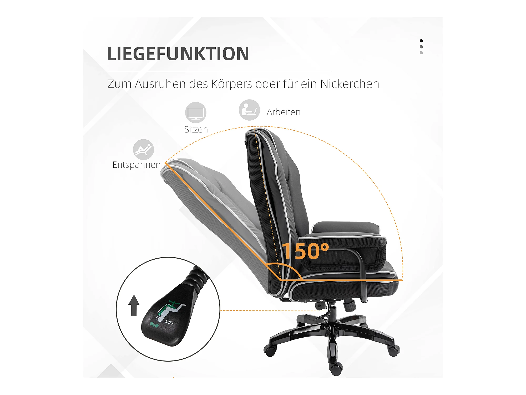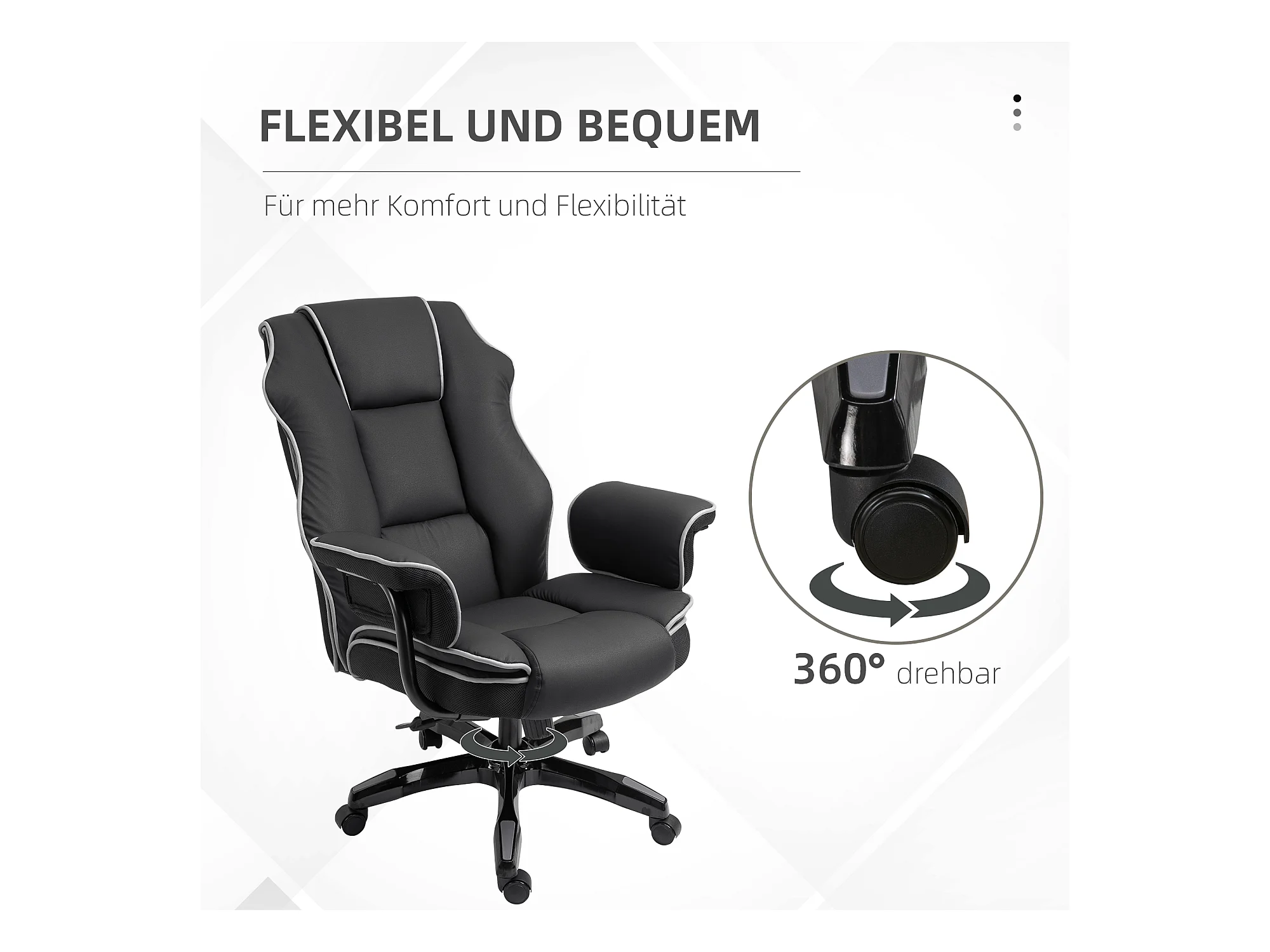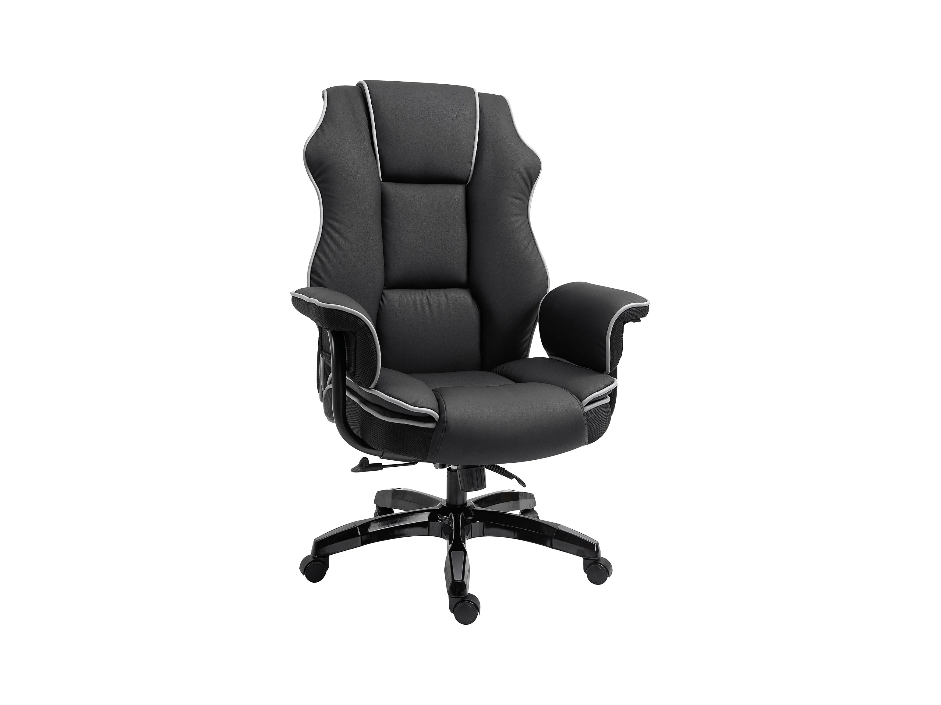 Fauteuil de bureau ergonomique, hauteur réglable, fonction bascule, simili cuir, noir (76x80x118-124cm)