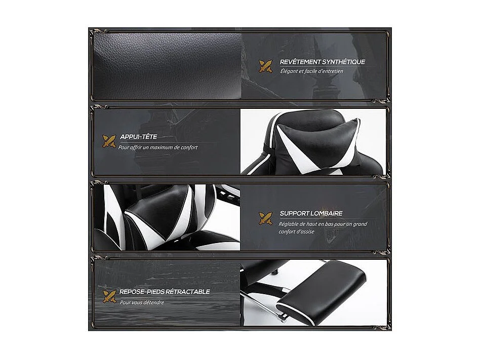 Fauteuil de bureau Gaming Gamer INVADERS Pivotant Noir et Blanc