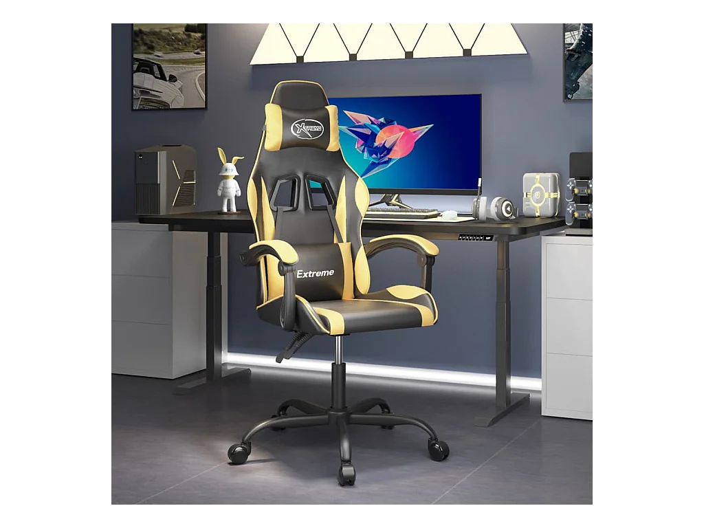 Chaise gaming avec repose-pied Noir&Doré Similicuir SEF70458