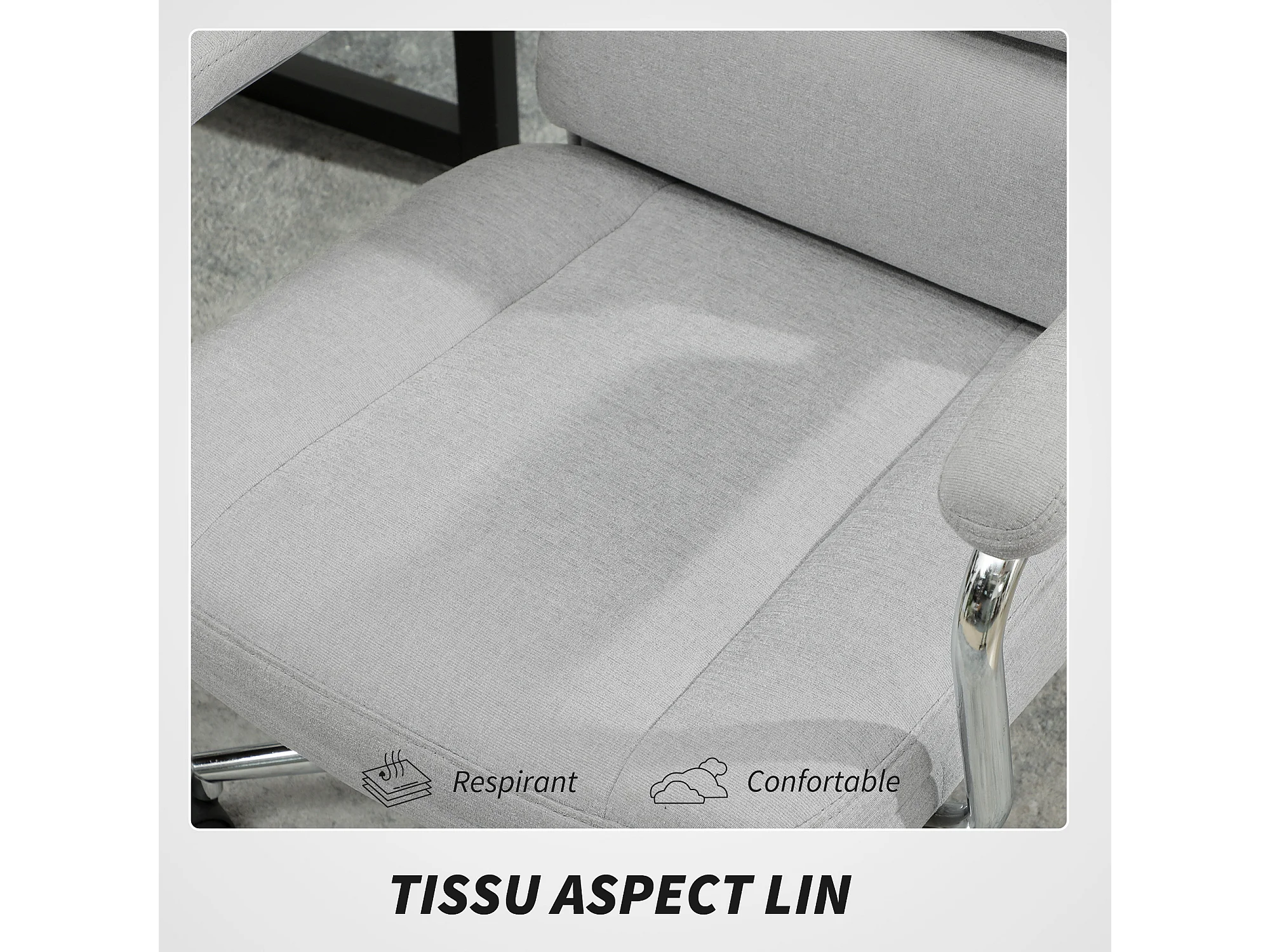 Fauteuil de bureau manager design accoudoirs rembourrés acier chromé tissu toucher lin gris clair