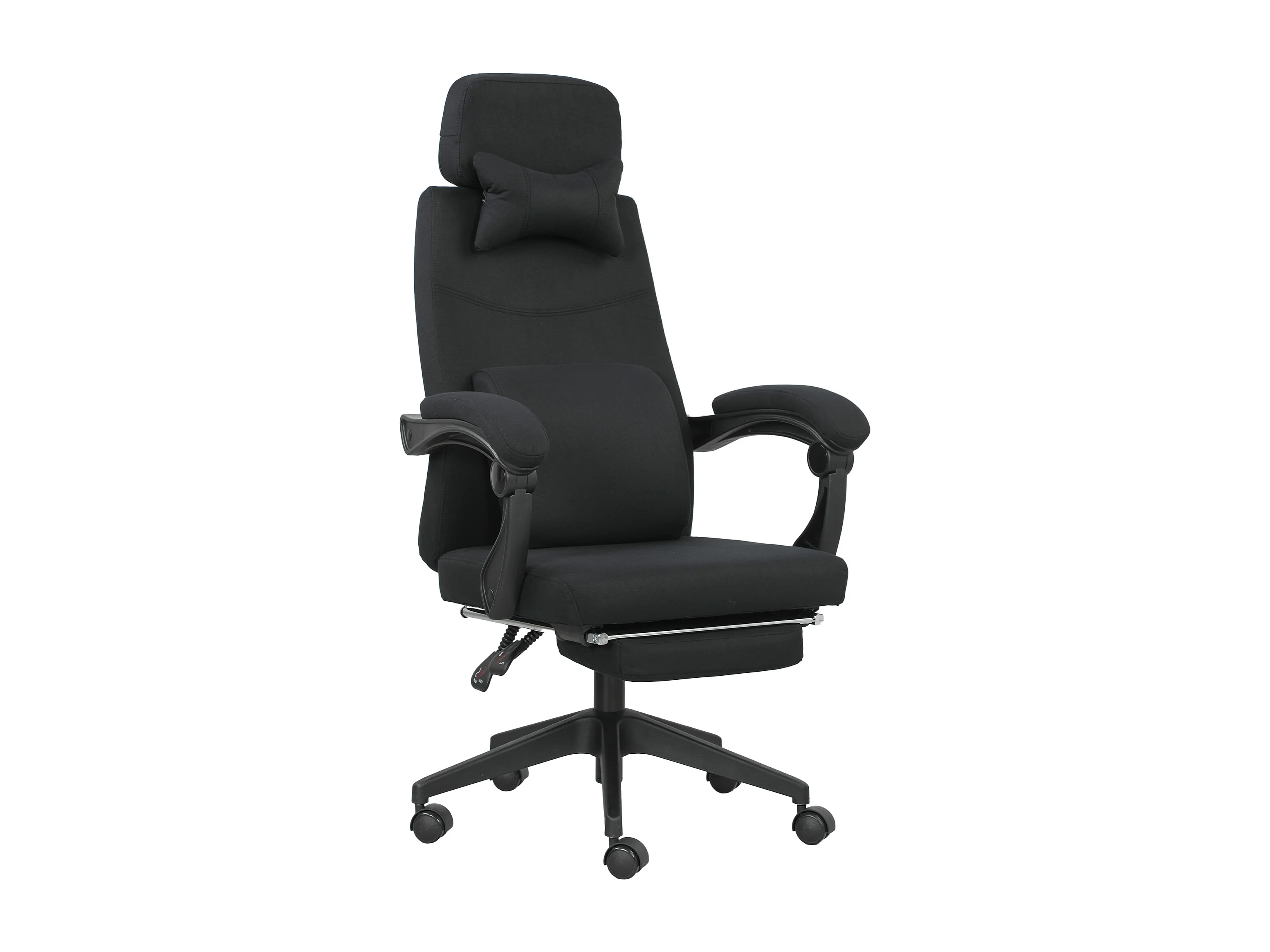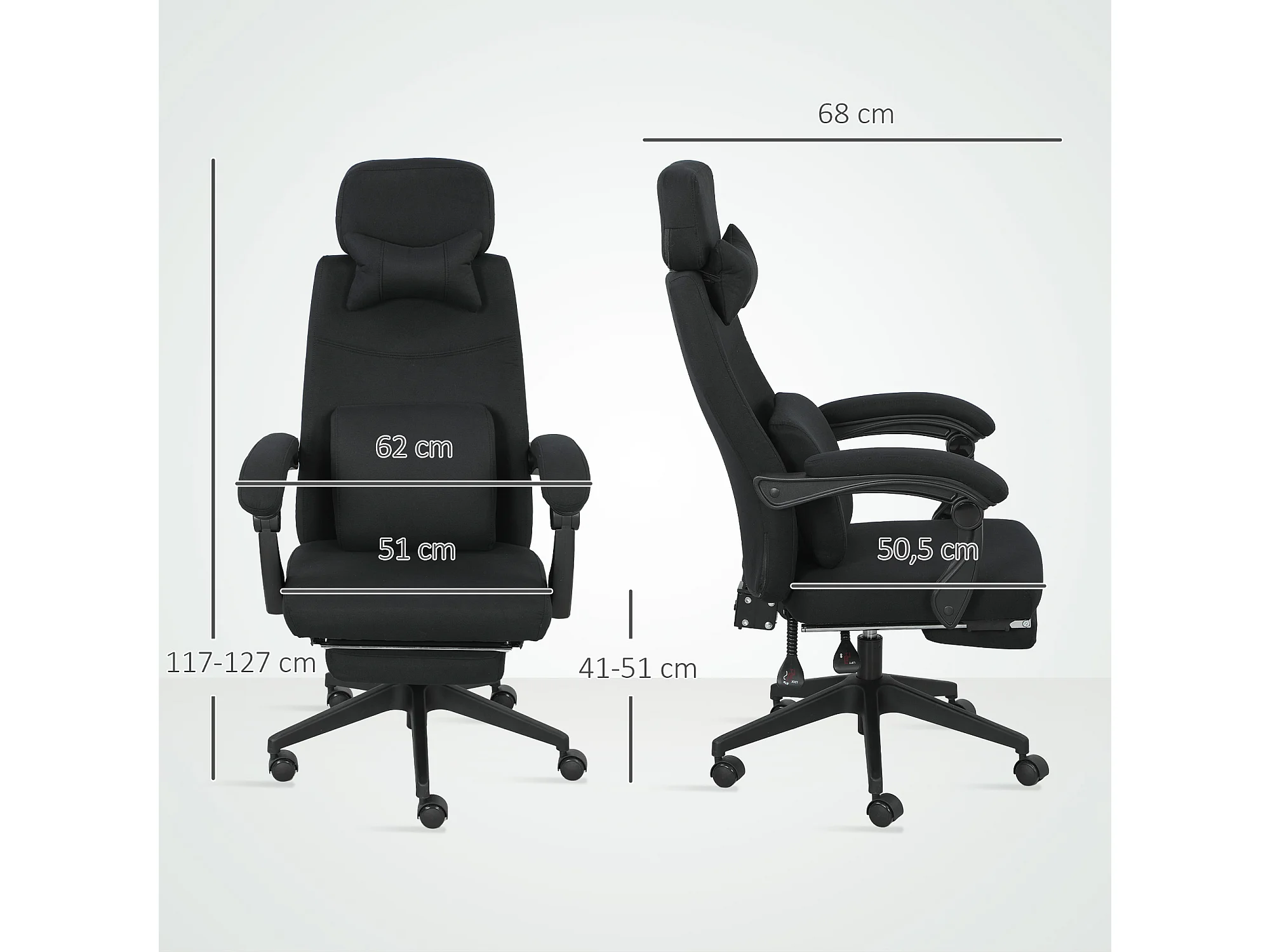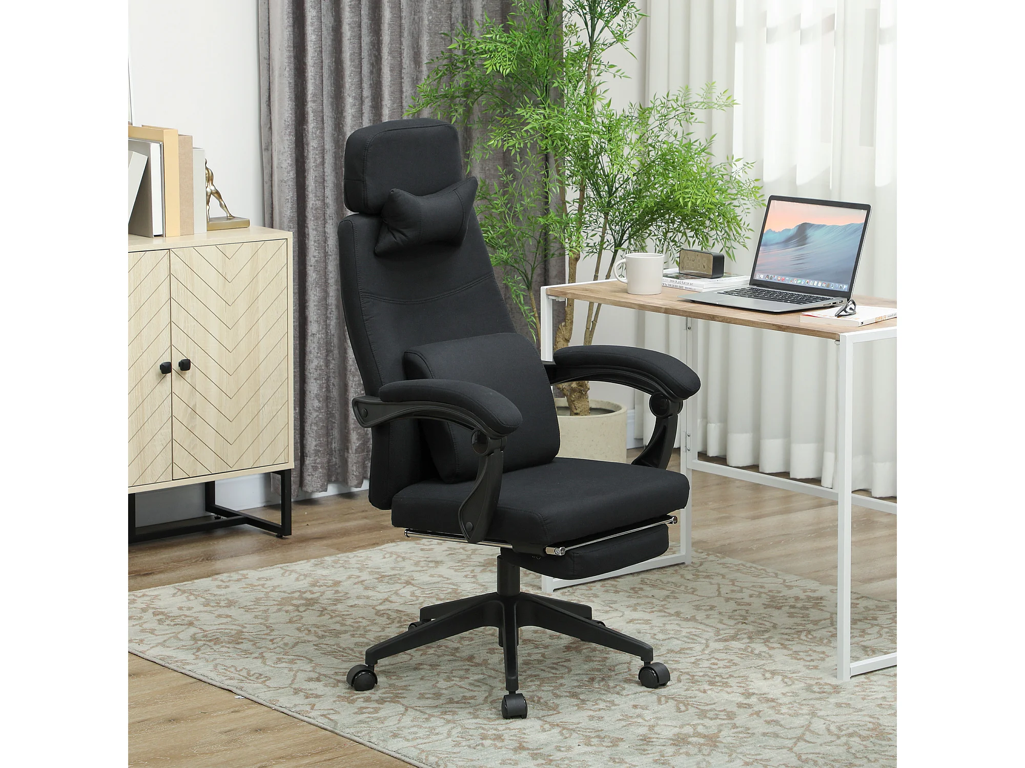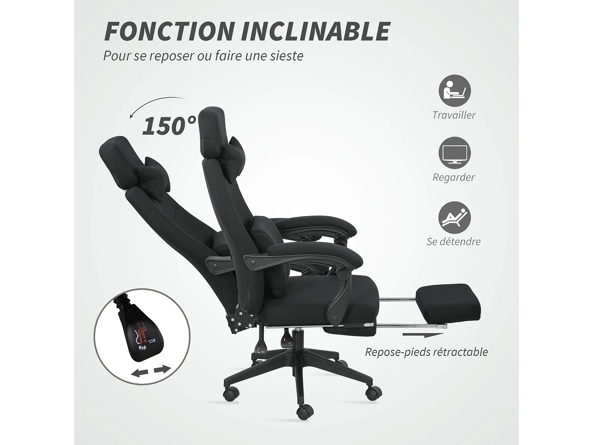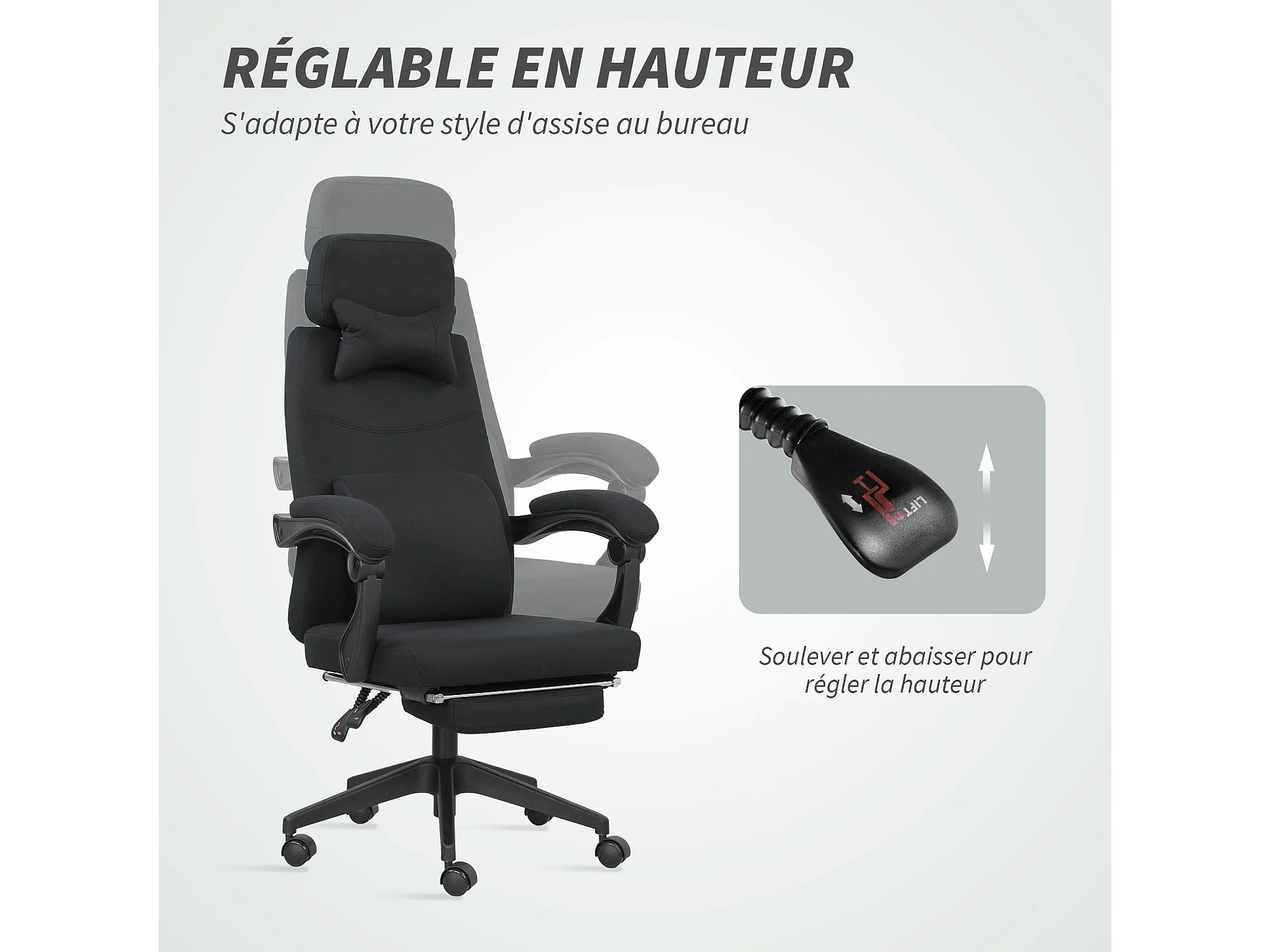 Fauteuil de bureau manager grand confort dossier réglable repose-pied coussin lombaire roulettes 360° lin 62L x 68P x 127H cm noir
