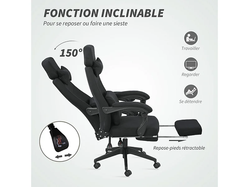 Fauteuil de bureau manager repose-pied intégrés JOYCE noir