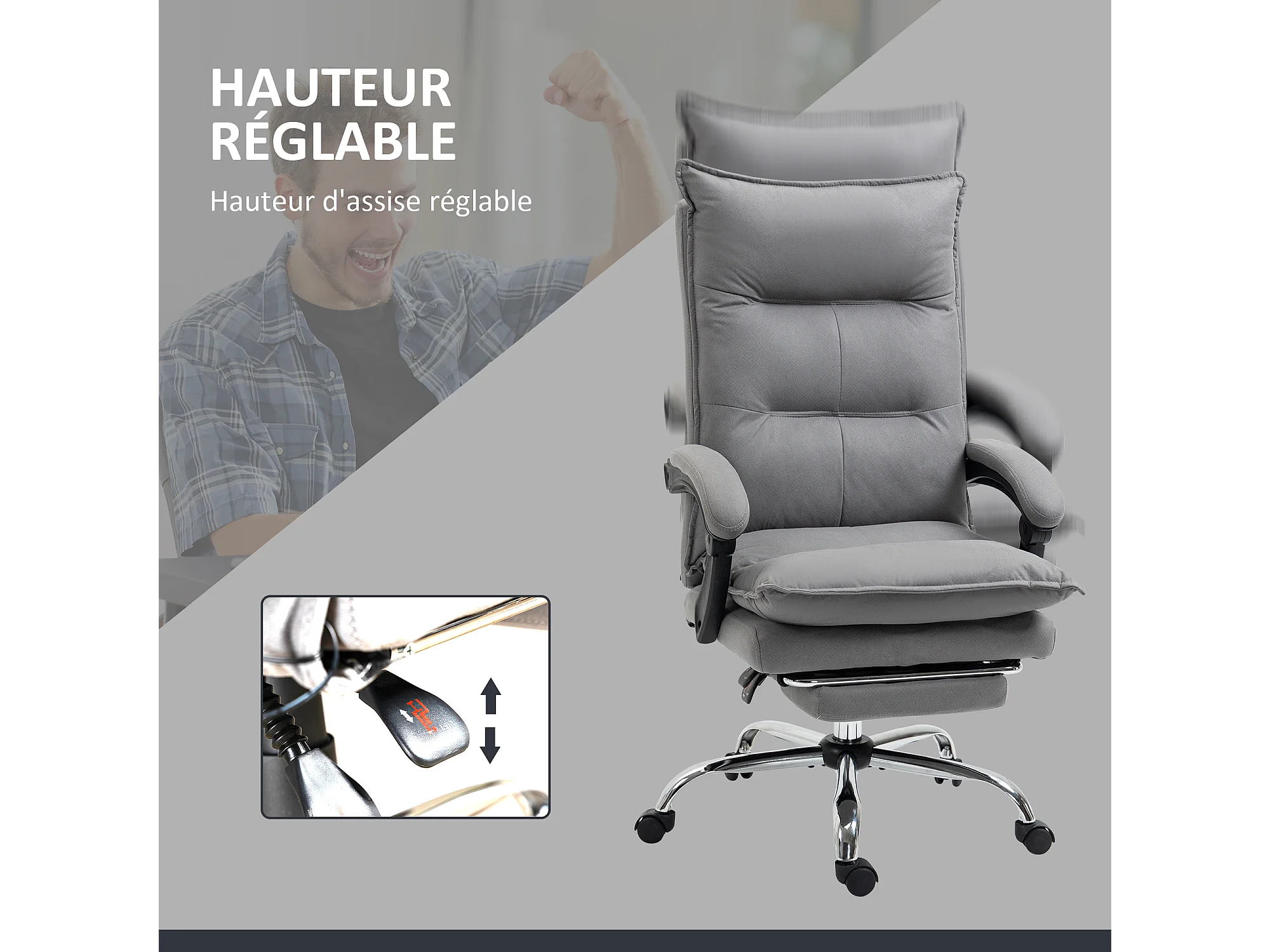 Vinsetto Fauteuil de bureau manager grand confort repose-pied tétière + coussin lombaires intégrés dossier inclinable accoudoirs réglables lin gris