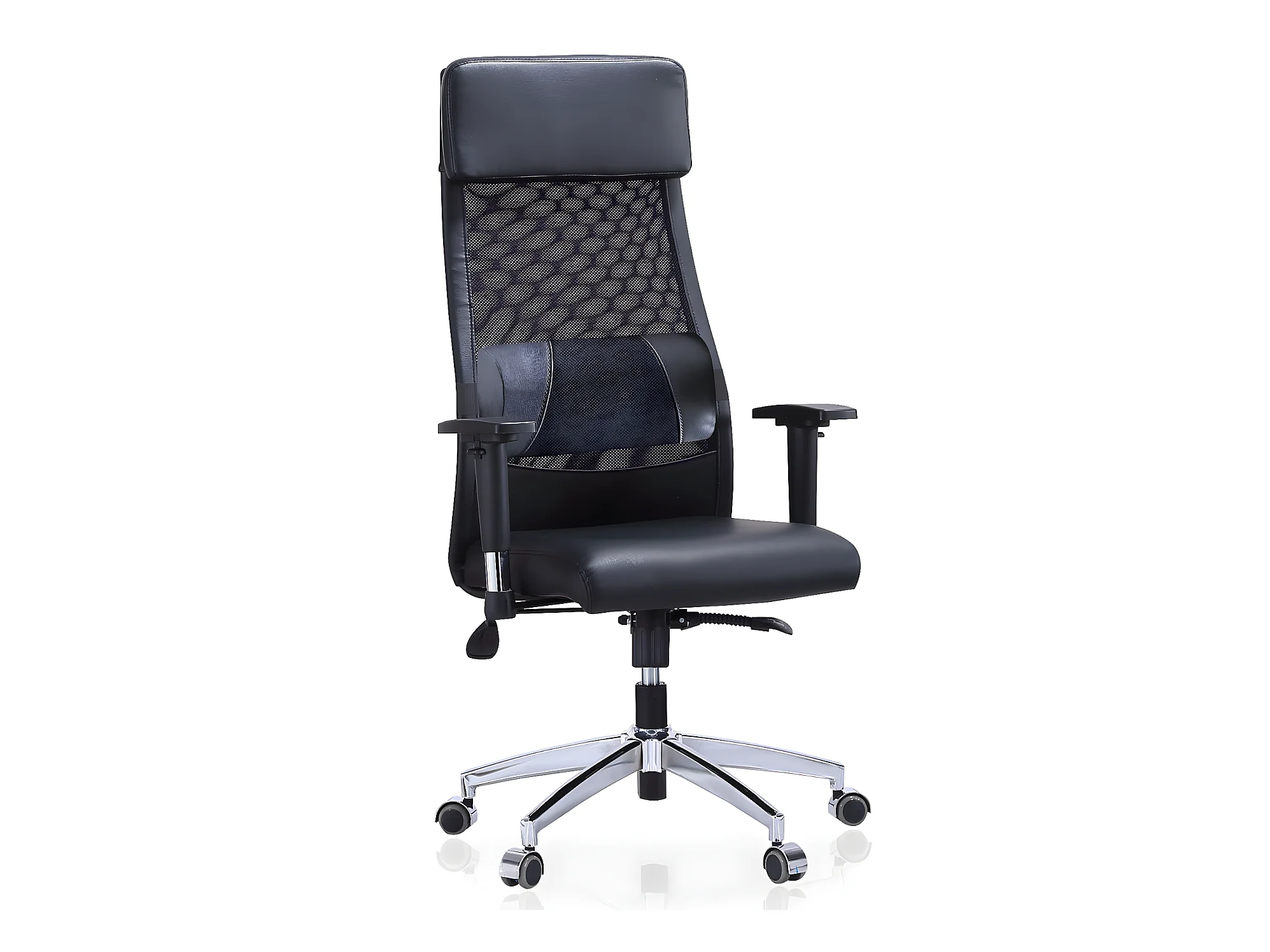 Fauteuil de bureau pivotant en simili-cuir coloris noir - Largeur 65 x Profondeur 65 x hauteur 120-128 cm