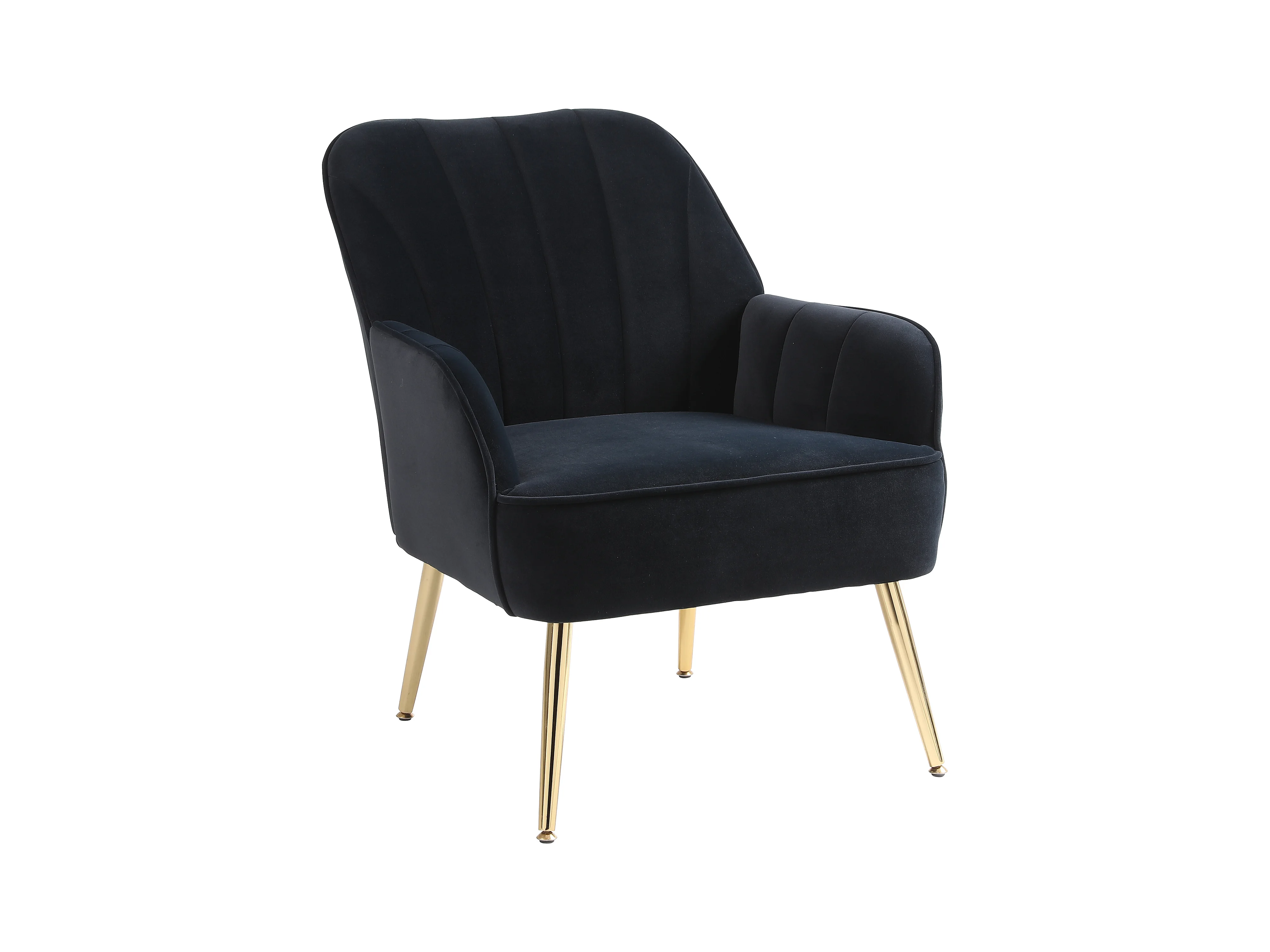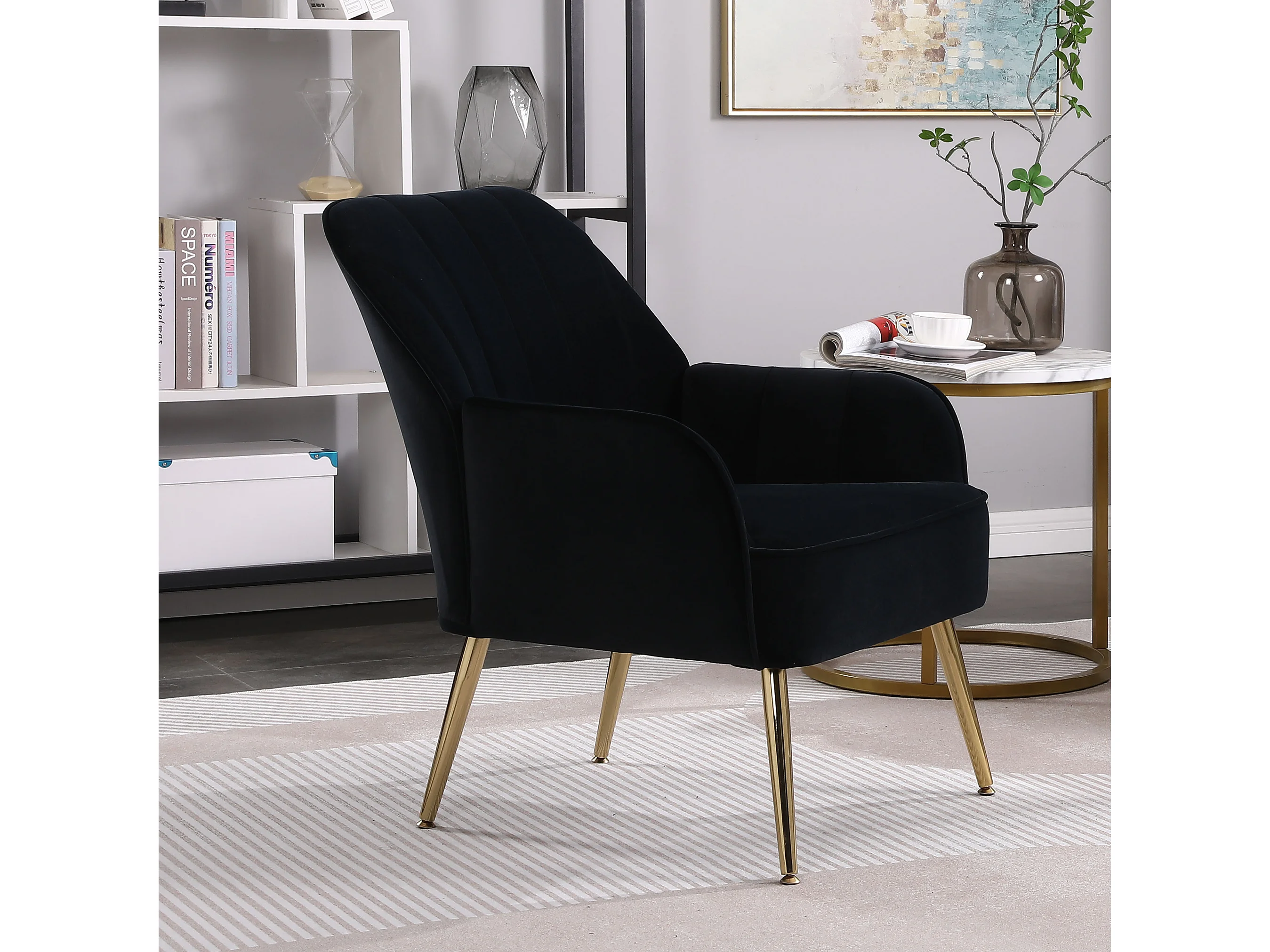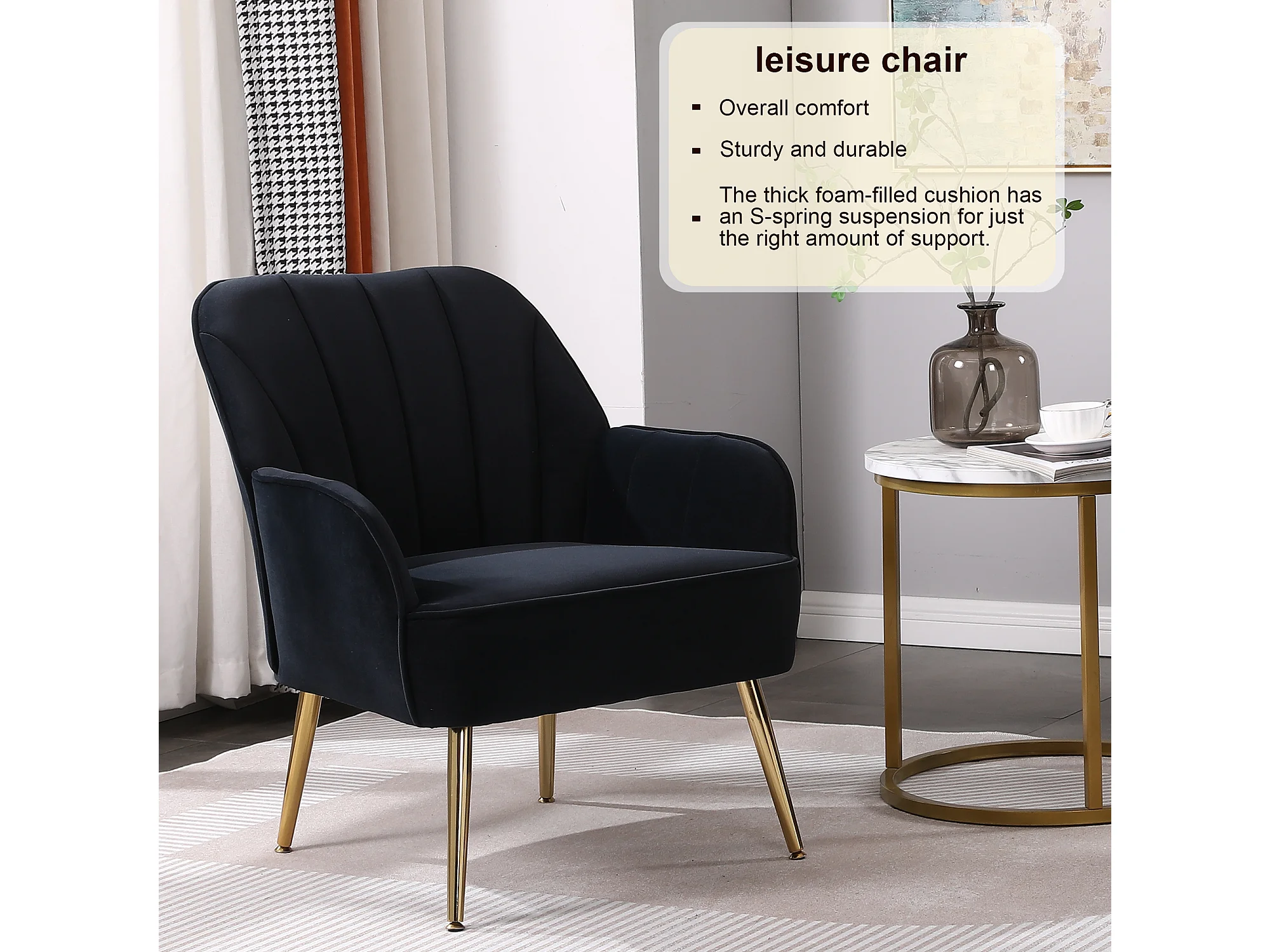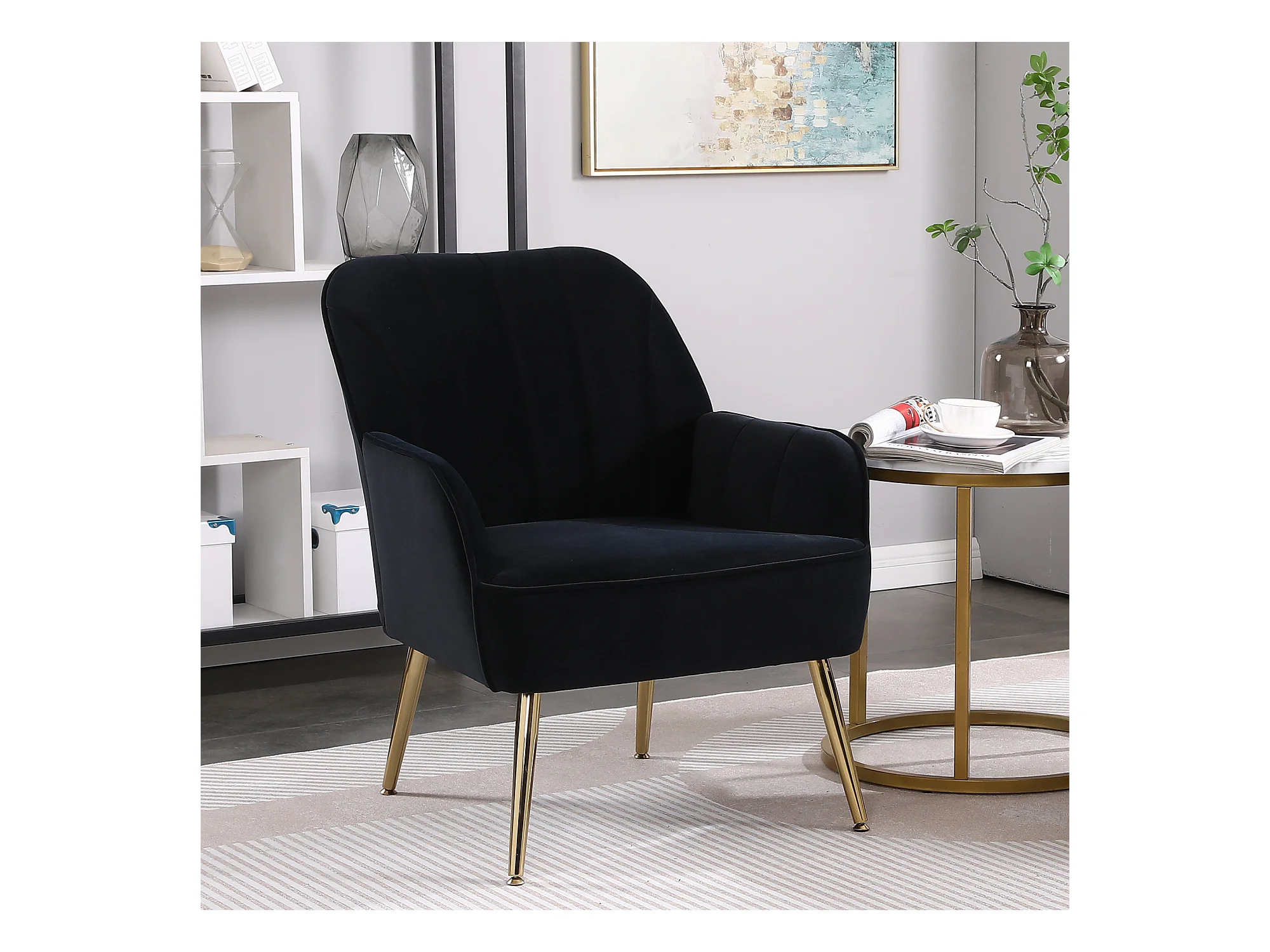 Fauteuil de détente en velours, design classique, bois et métal, noir (64x73x78 cm)