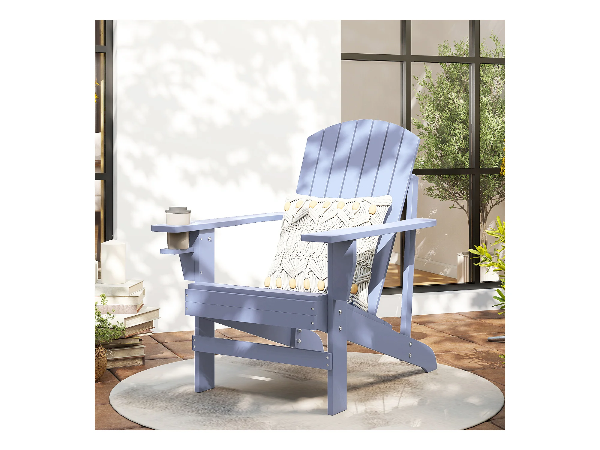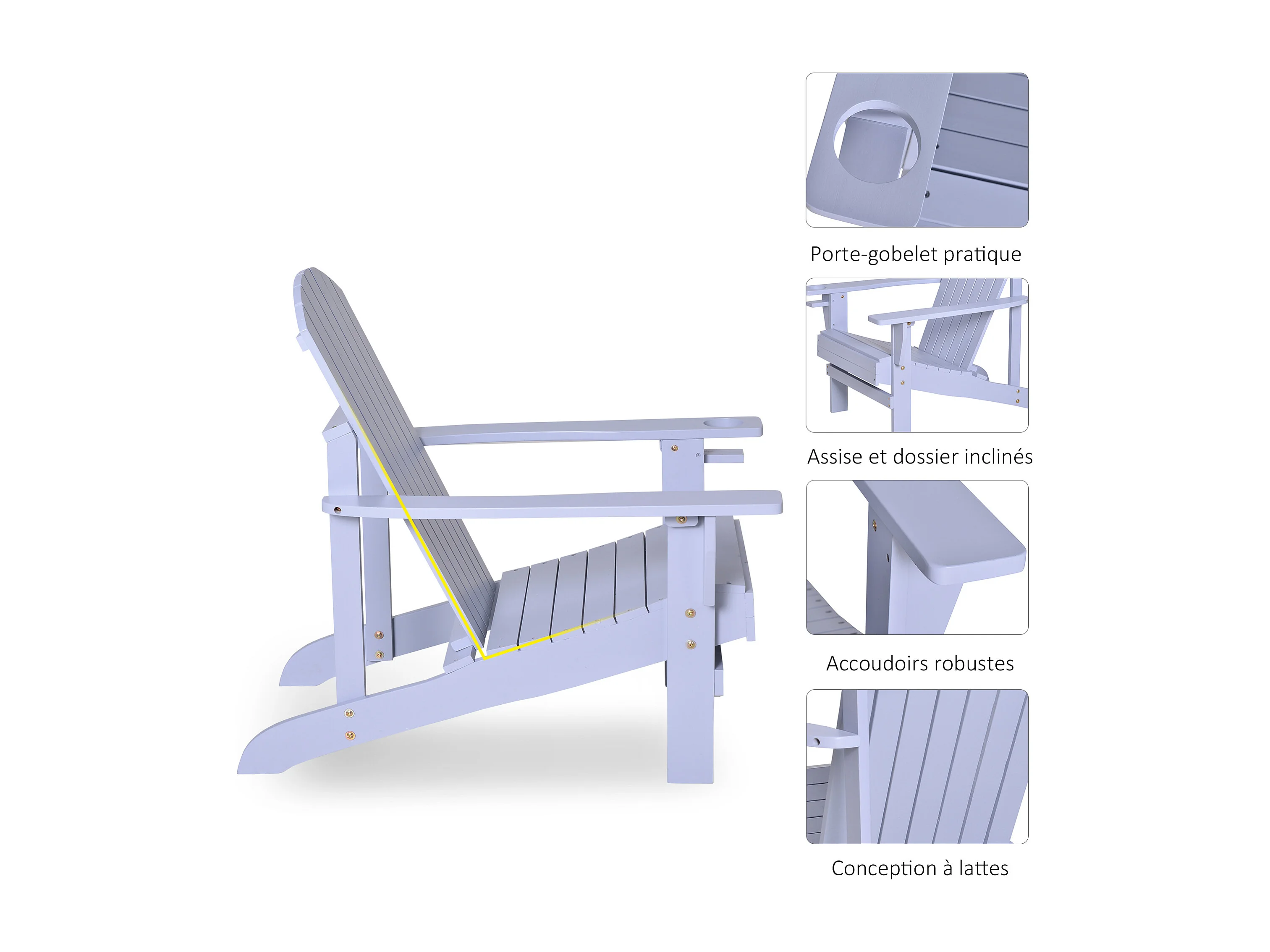 Fauteuil de jardin Adirondack grand confort porte-gobelet intégré bois de sapin traité peint gris