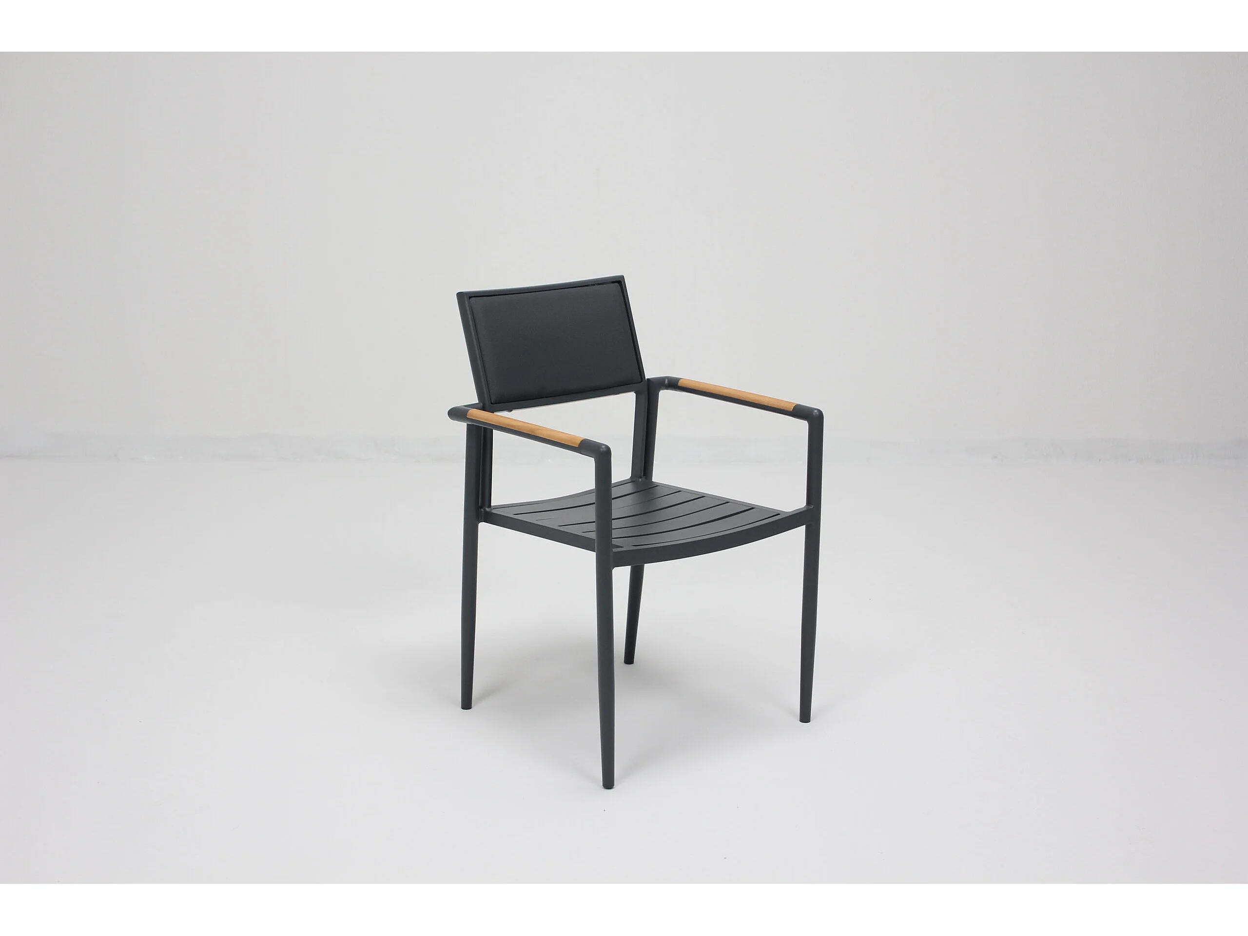 Fauteuil en teck massif, aluminium et textilène renforcé Anthracite PIANA