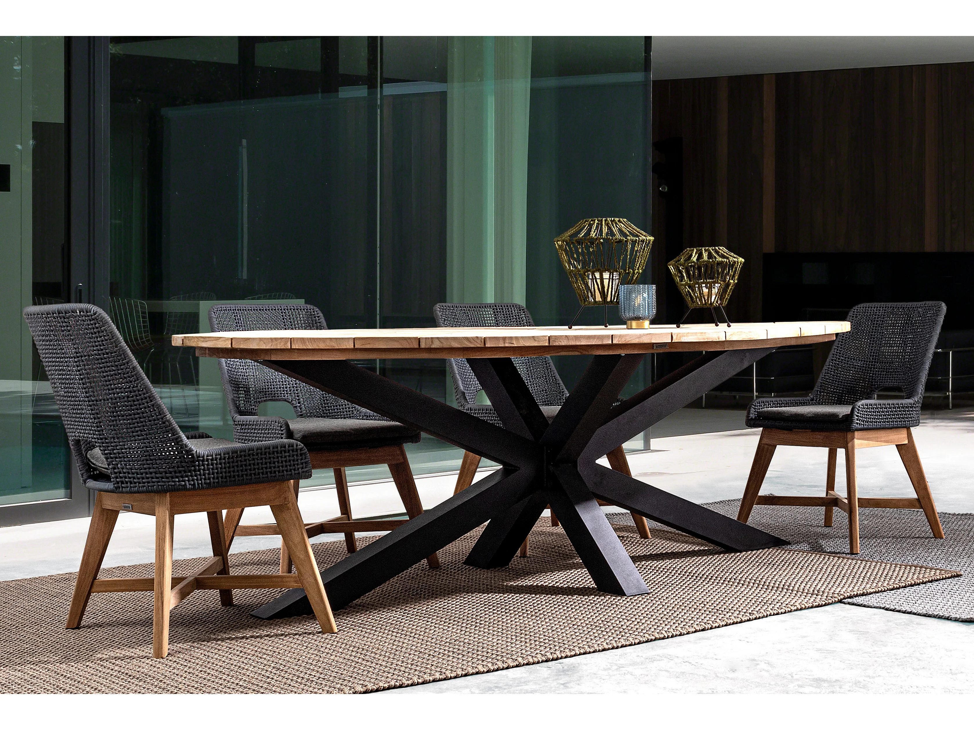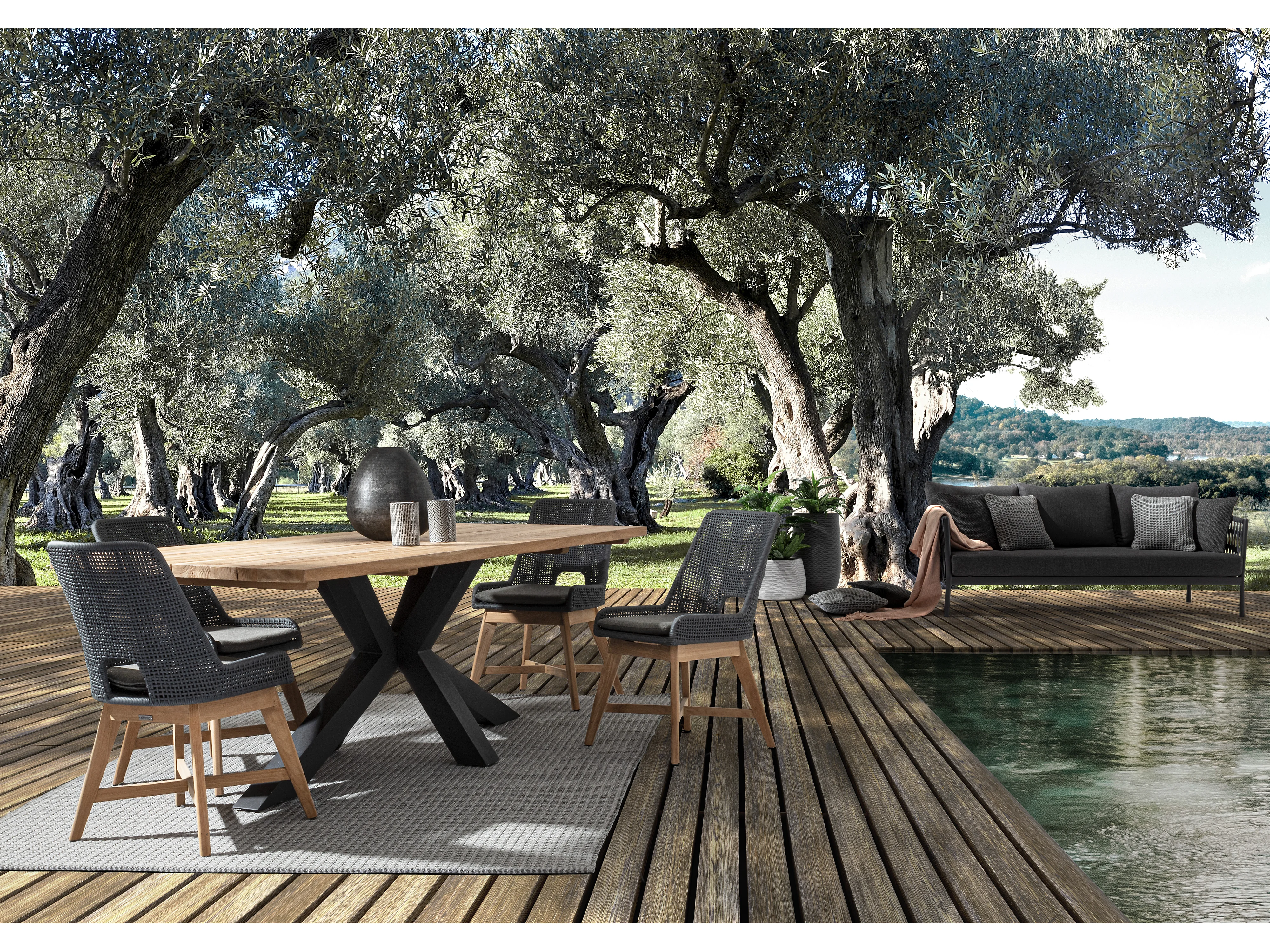 Fauteuil de jardin en tressage gris et pieds en bois de teck Peria - Lot de 2