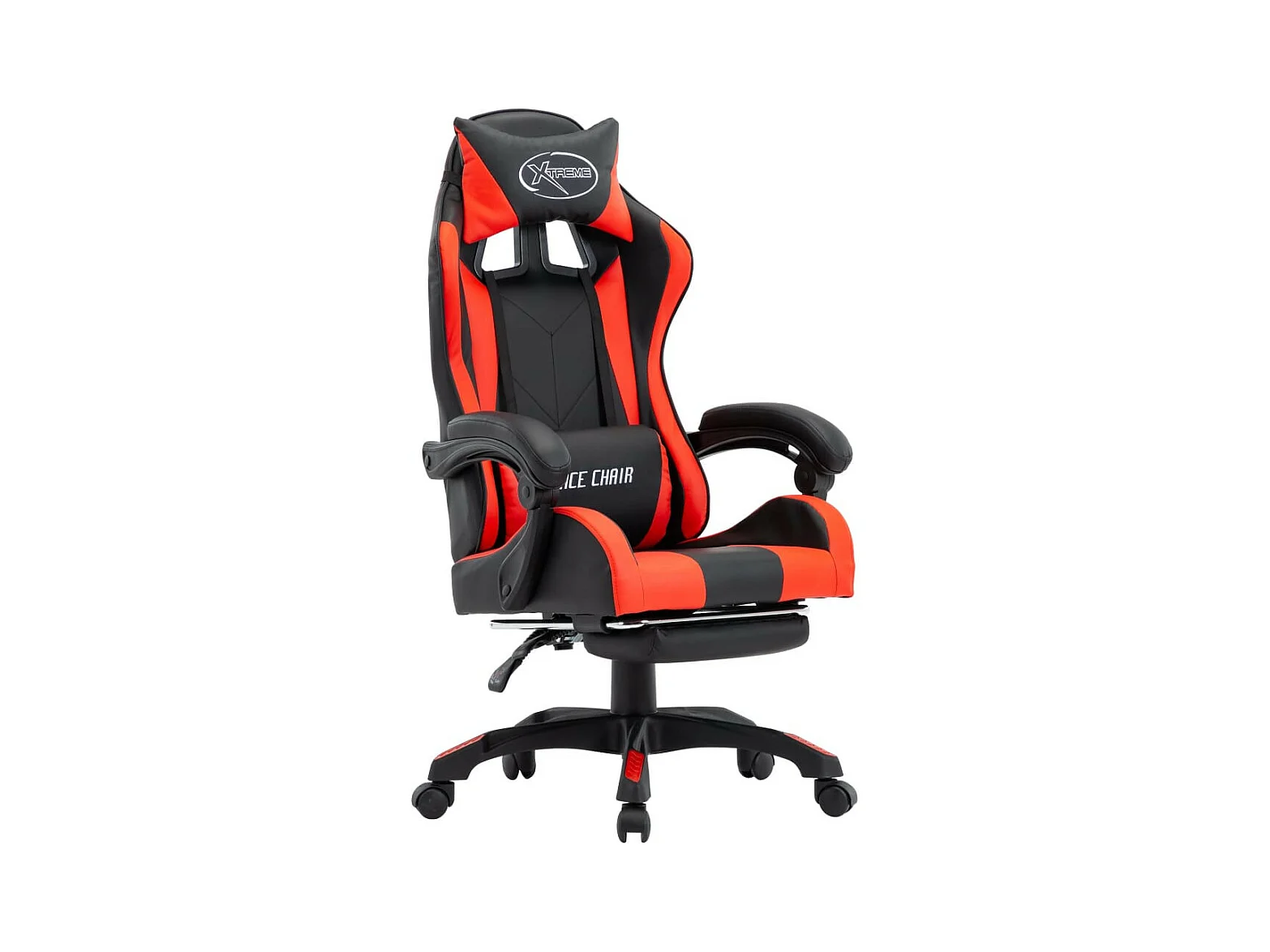 Fauteuil de jeux vidéo et repose-pied Rouge et noir Similicuir