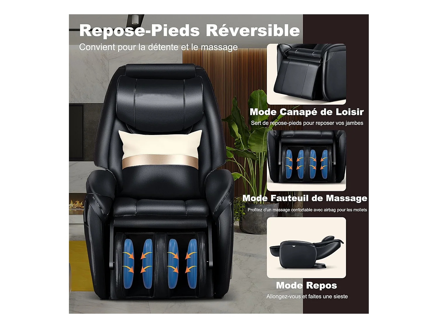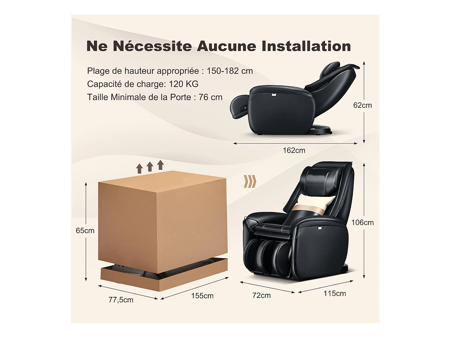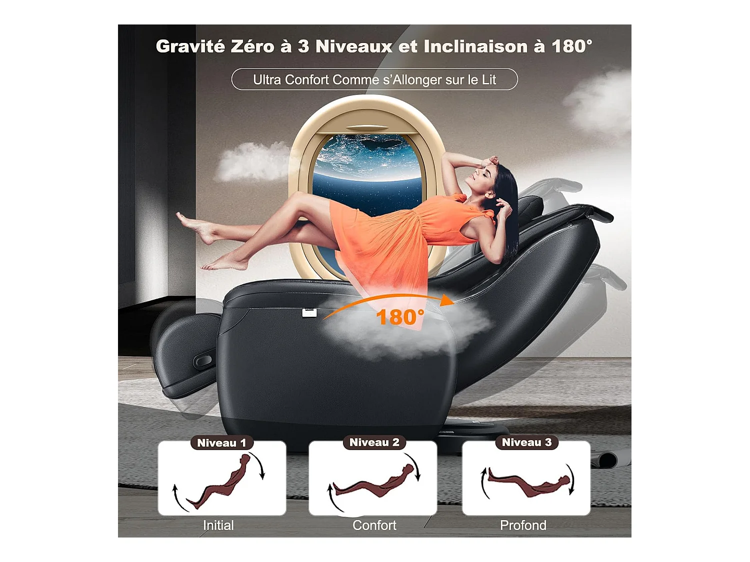 Fauteuil de Massage à Gravité Zéro avec Rail SL, Inclinable avec Massage Complet du Corps Chauffage du Dos Détection Auto des Épaules (Noir)