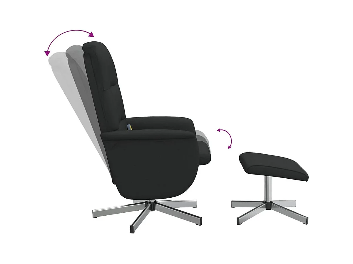 Fauteuil de massage inclinable avec repose-pied noir tissu