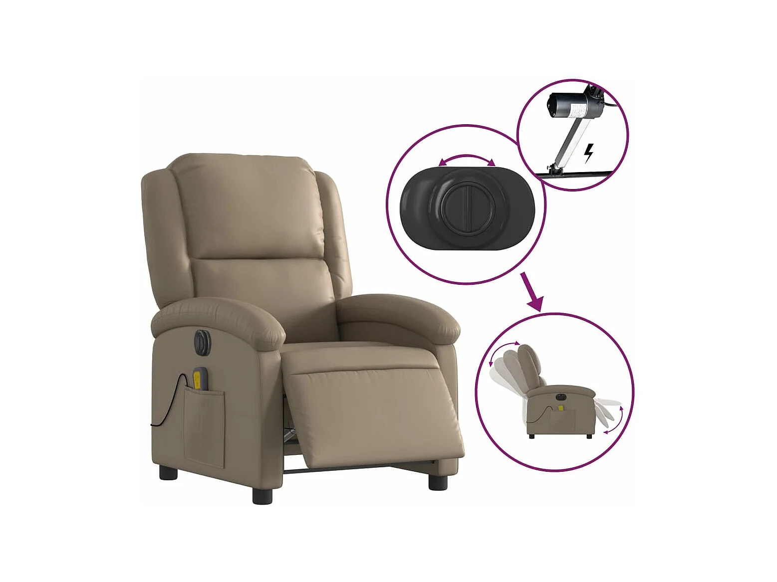 Fauteuil de massage inclinable électrique cappuccino similicuir REO20870