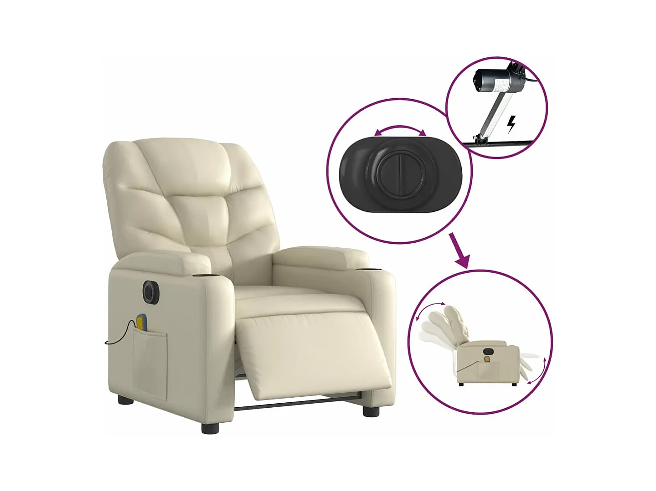 Fauteuil de massage inclinable électrique crème similicuir REO39887