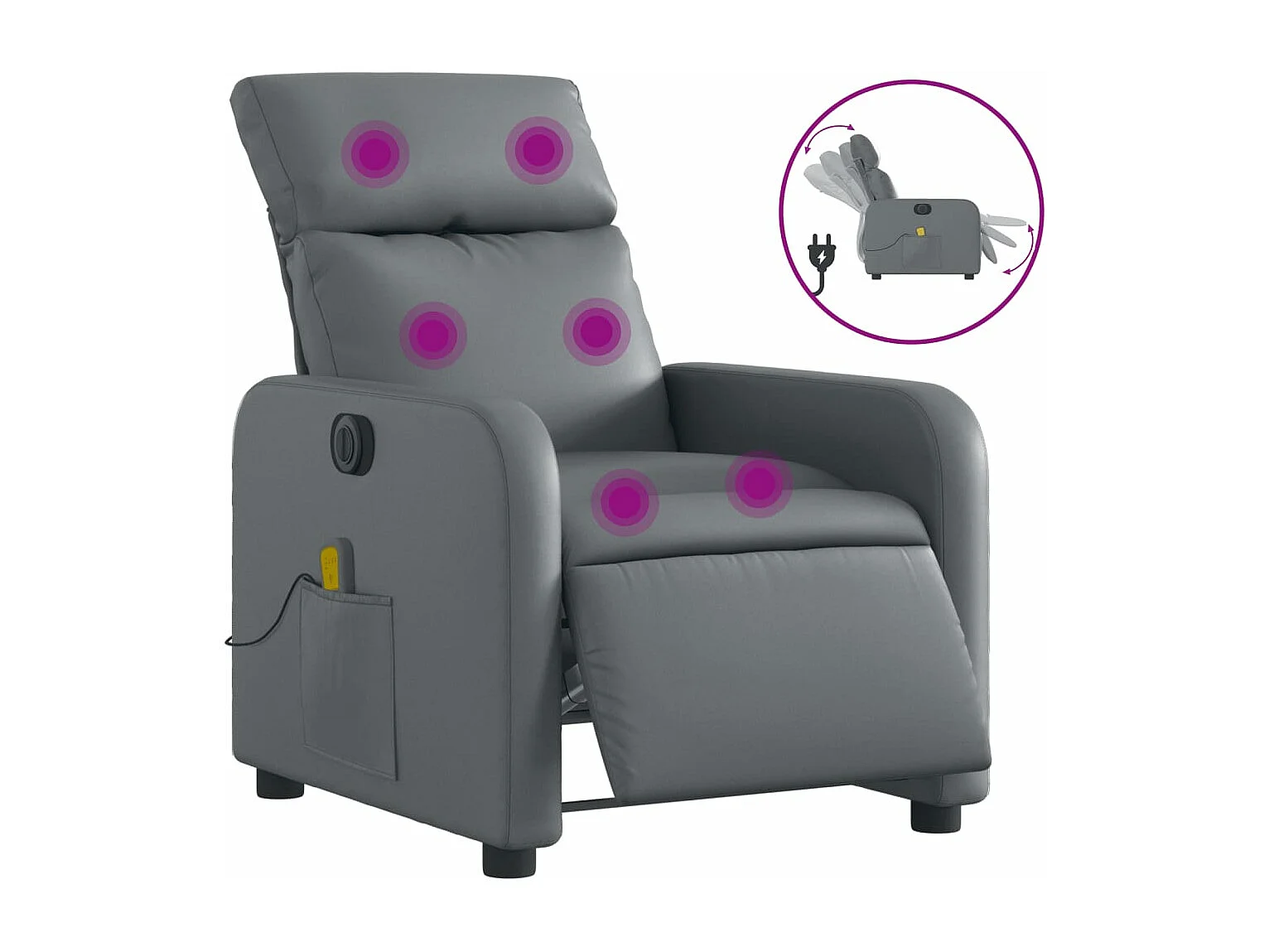 Fauteuil de massage inclinable électrique gris similicuir REO94385