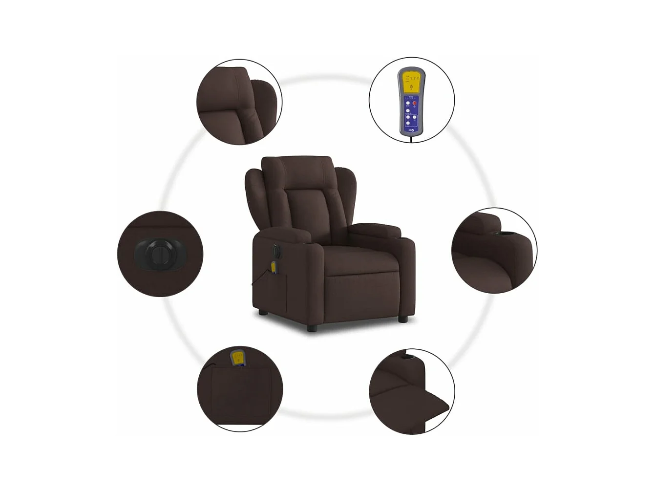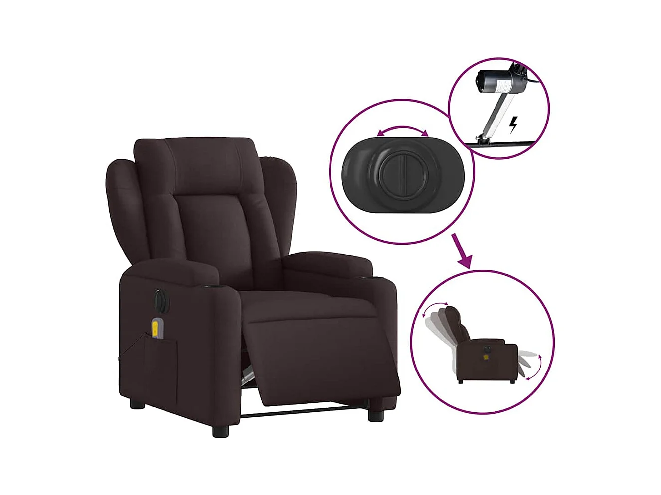Fauteuil de massage inclinable électrique Marron foncé Tissu