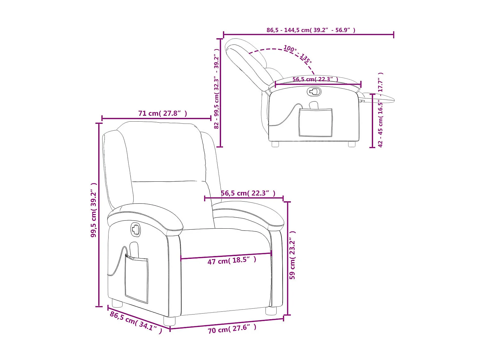 Fauteuil de relaxation TV cuir grise 71 x 86.5 x 99.5 cm DEC027170