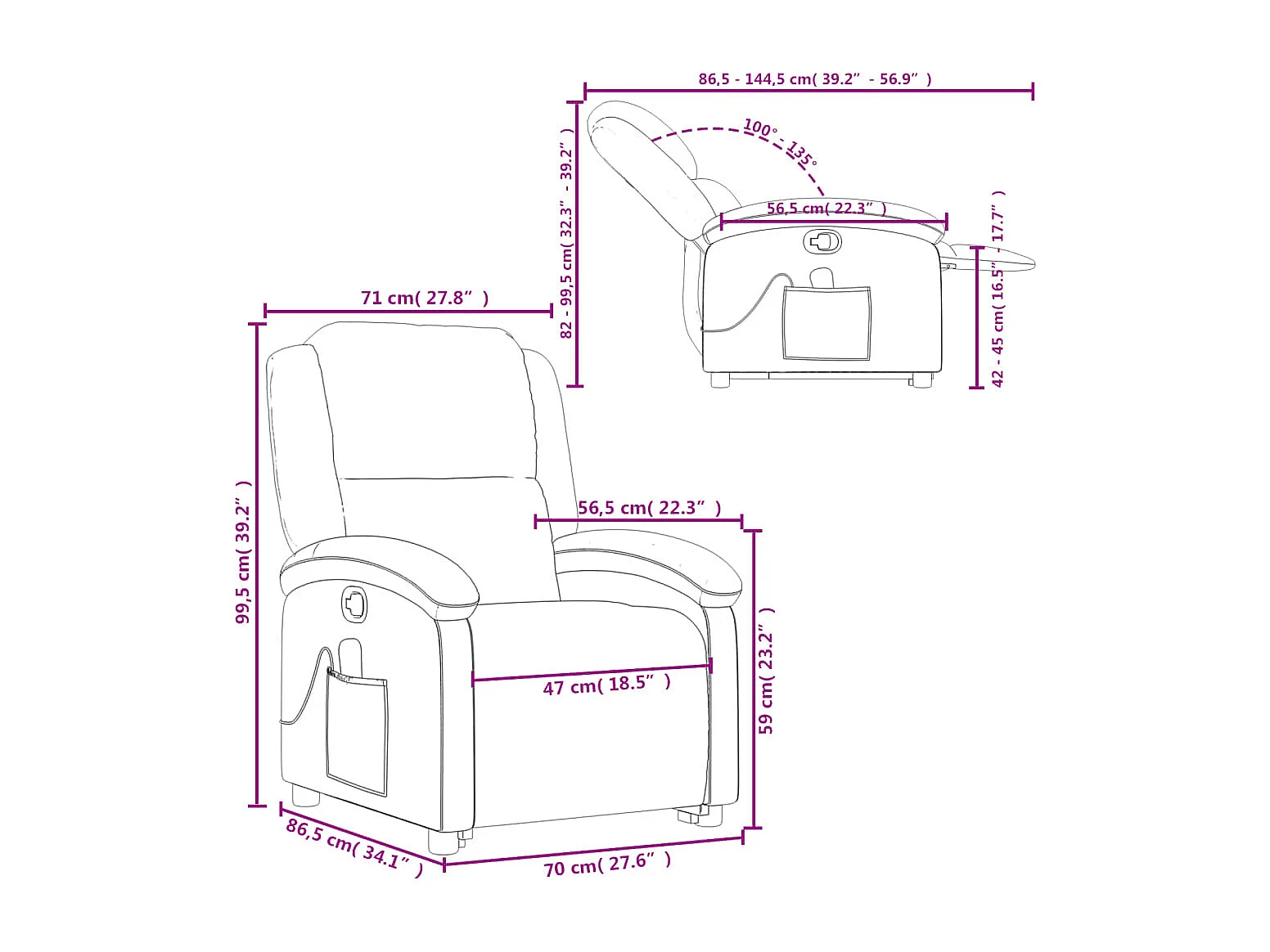 Fauteuil de massage inclinable Rouge bordeaux Velours