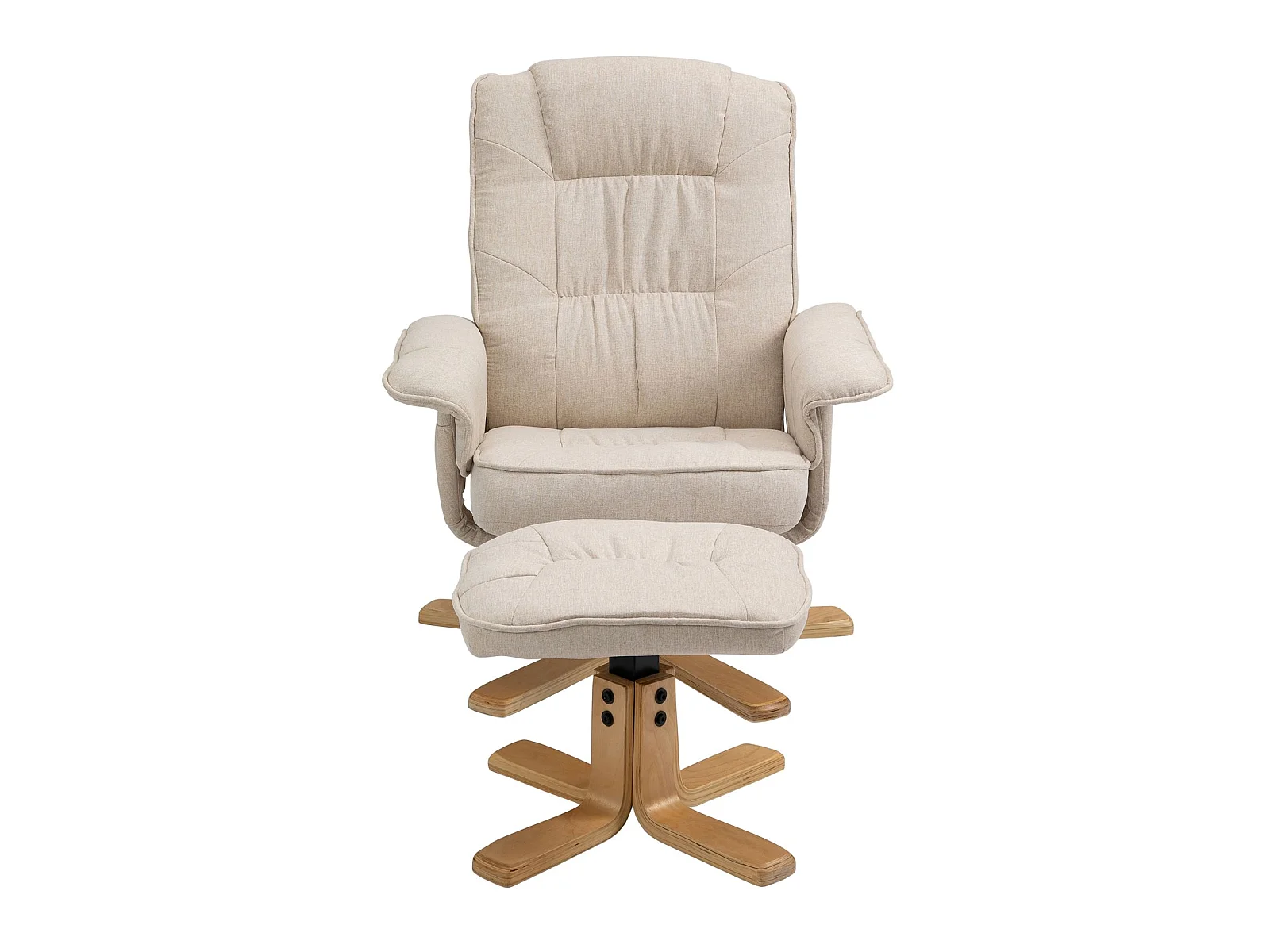 Fauteuil de relaxation CHARLY avec repose-pieds pouf siège pivotant dossier inclinable assise rembourrée relax, en tissu beige