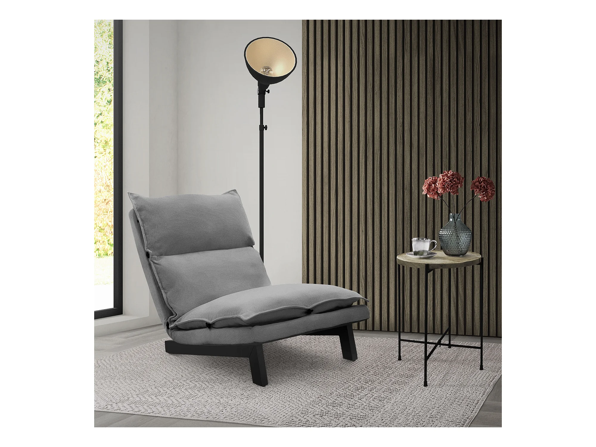 Fauteuil de relaxation de sol gris revêtement en lin rembourrage doux en polyester et structure robuste en acier dossier inclinable en 5 positions
