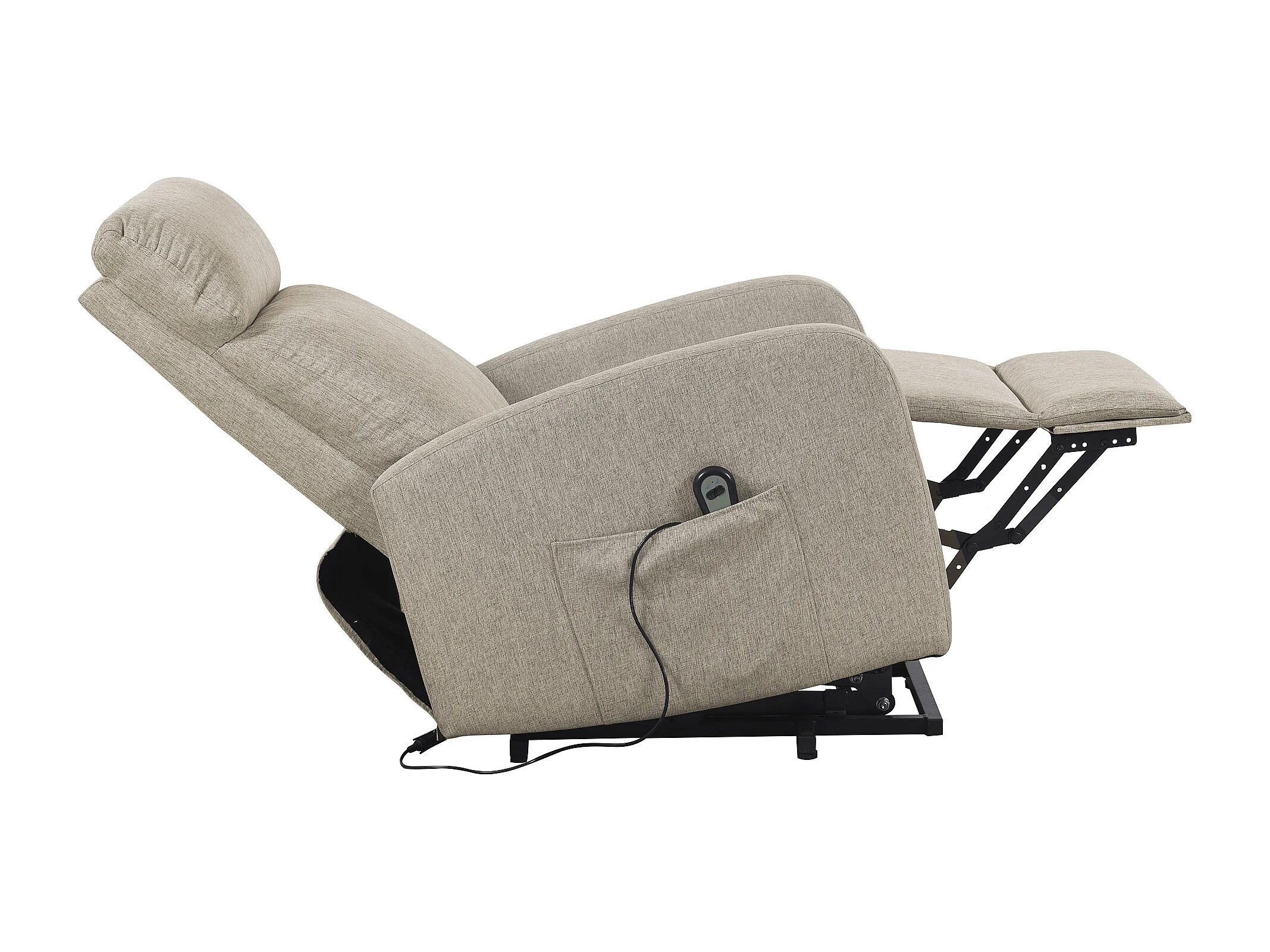Fauteuil de relaxation électrique inclinable en tissu beige avec repose pieds - Longueur 64 x Largeur 93 x Hauteur 104 cm