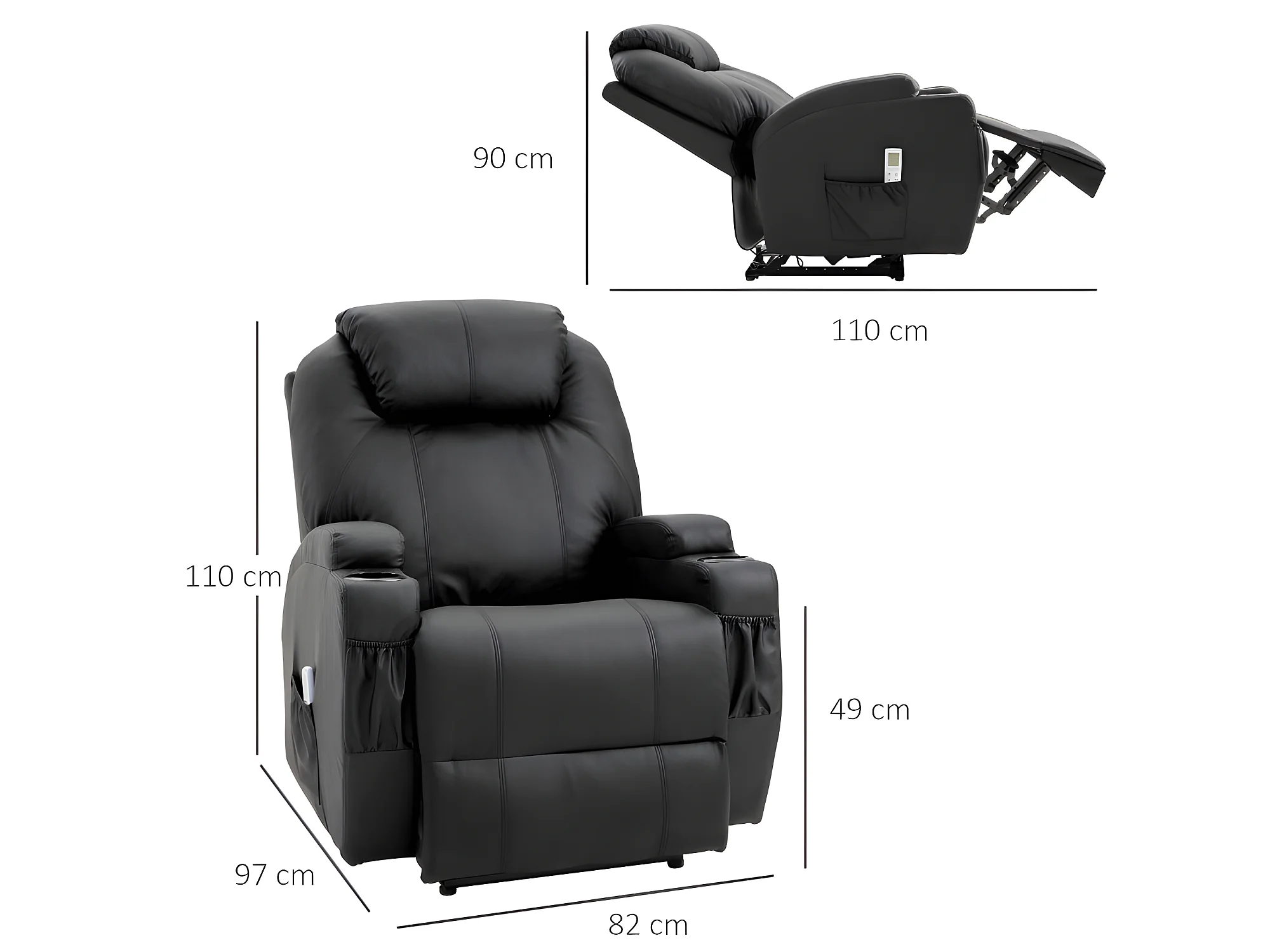 Fauteuil de relaxation électrique massant CHARLOTTE Noir