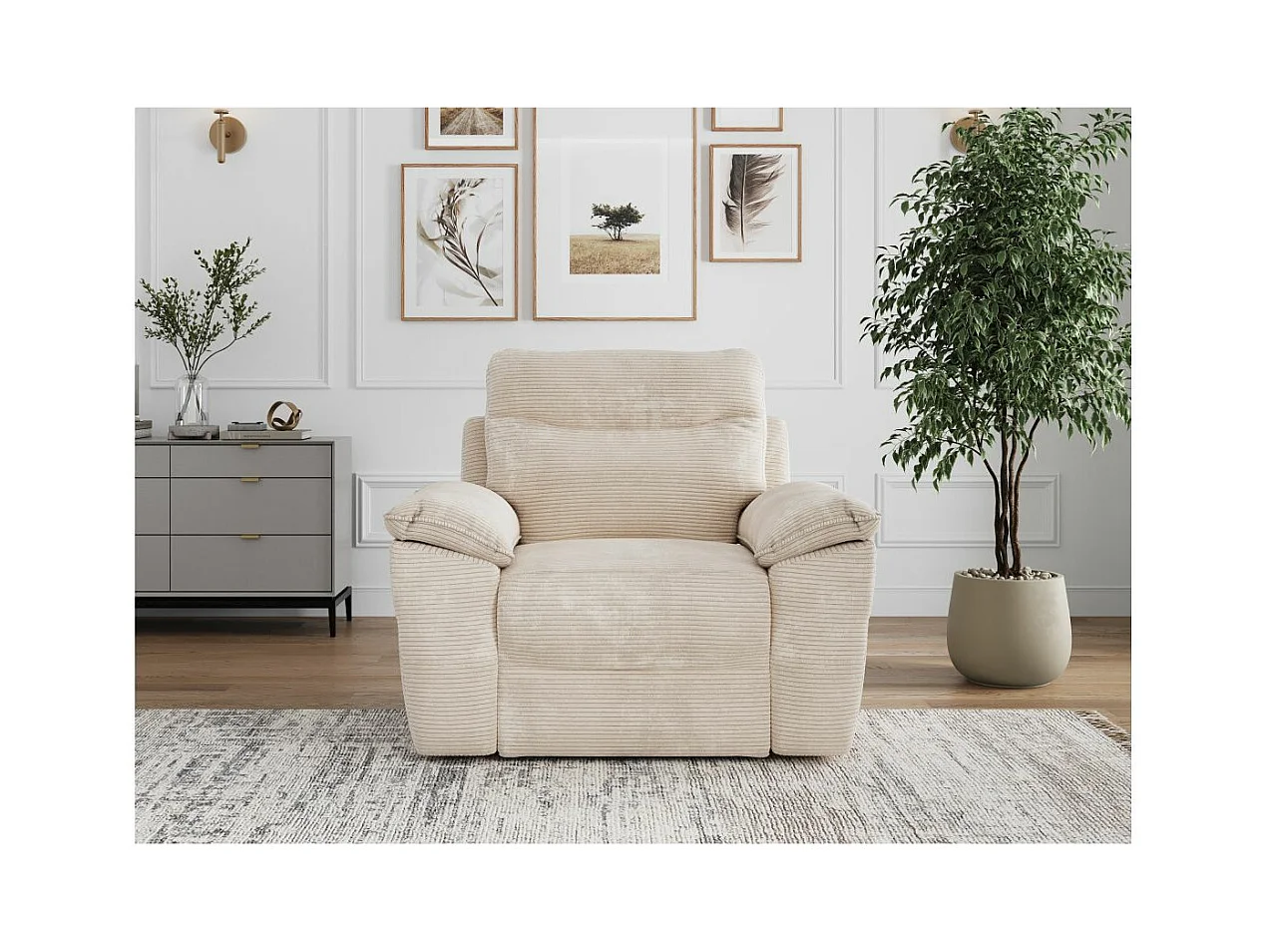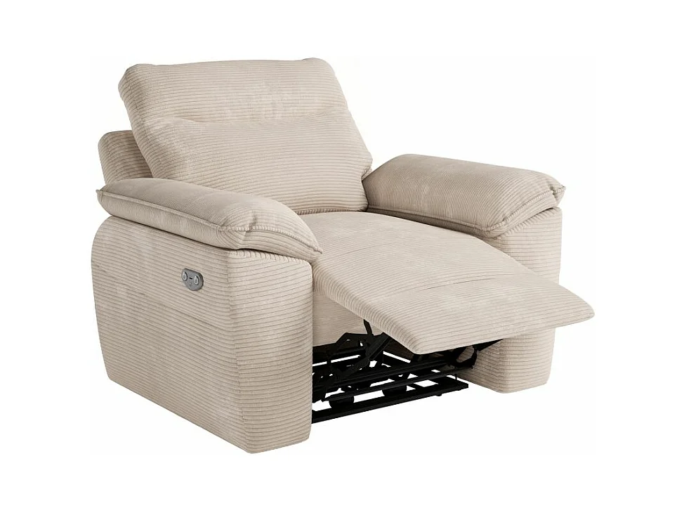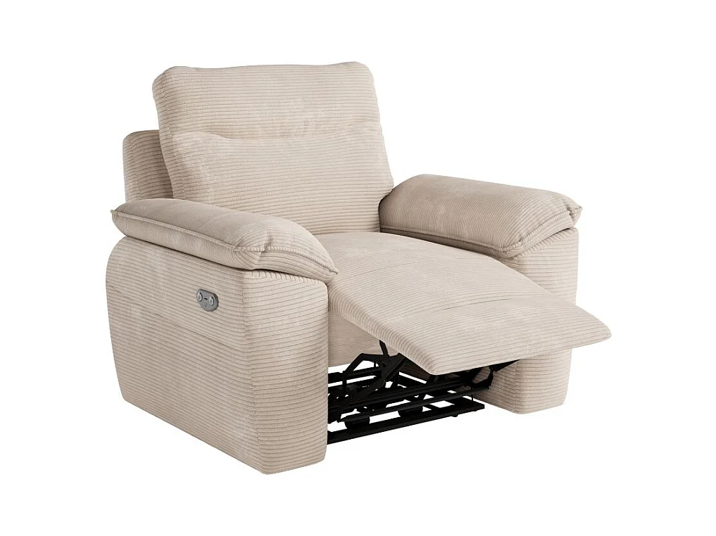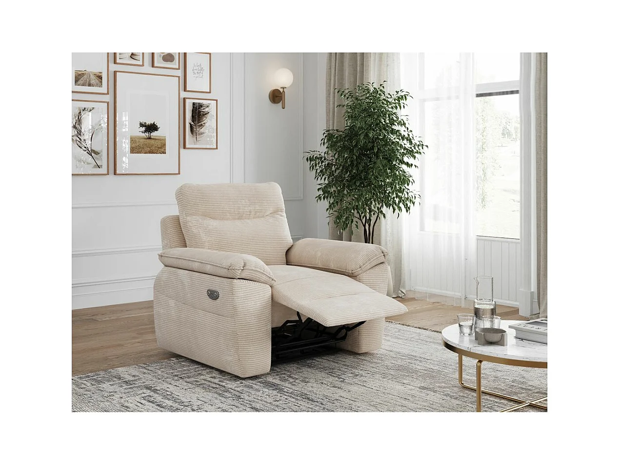 Fauteuil de relaxation électrique Ross en velours côtelé - Beige - L101 x P100 x H102cm - Loungitude