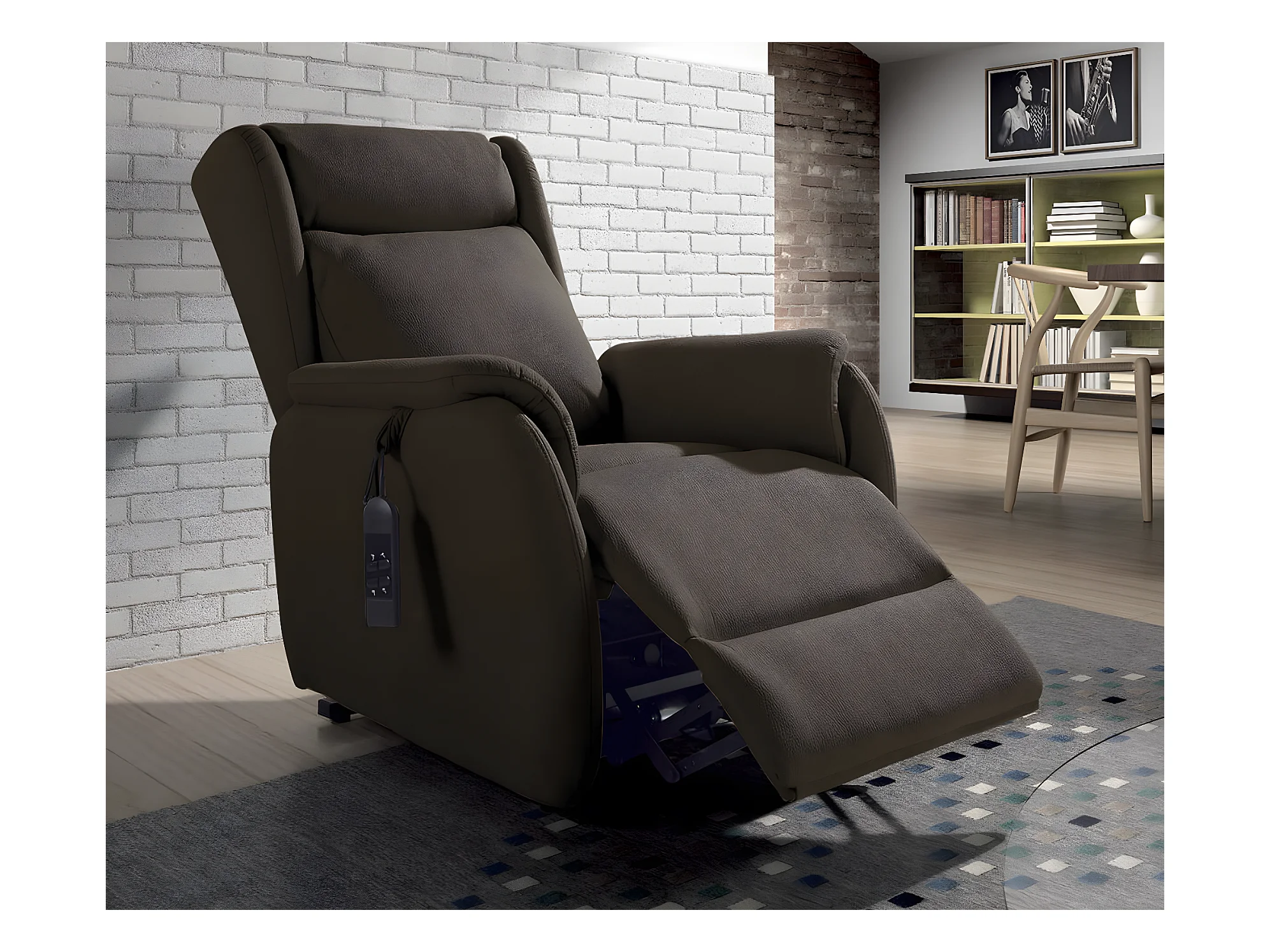 Fauteuil de relaxation et releveur 2 moteurs en nubuck 2 moteurs électriques Biza-Couleur Marron
