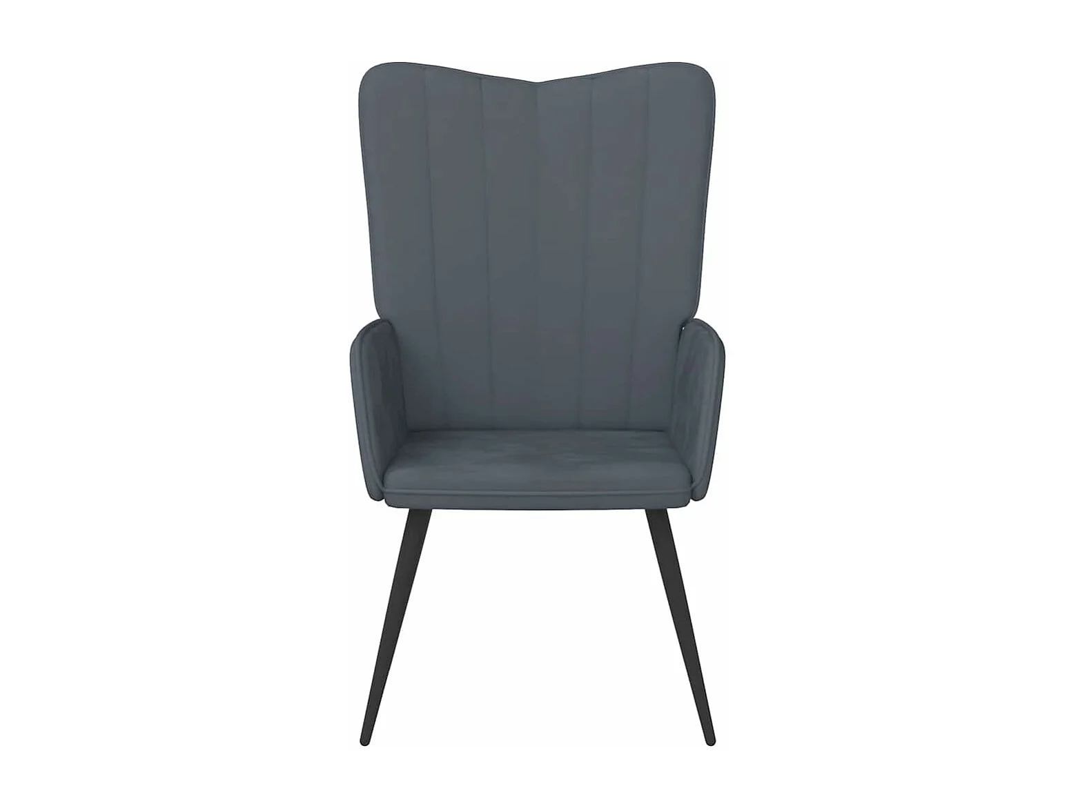 Fauteuil à oreilles avec tabouret gris foncé velours