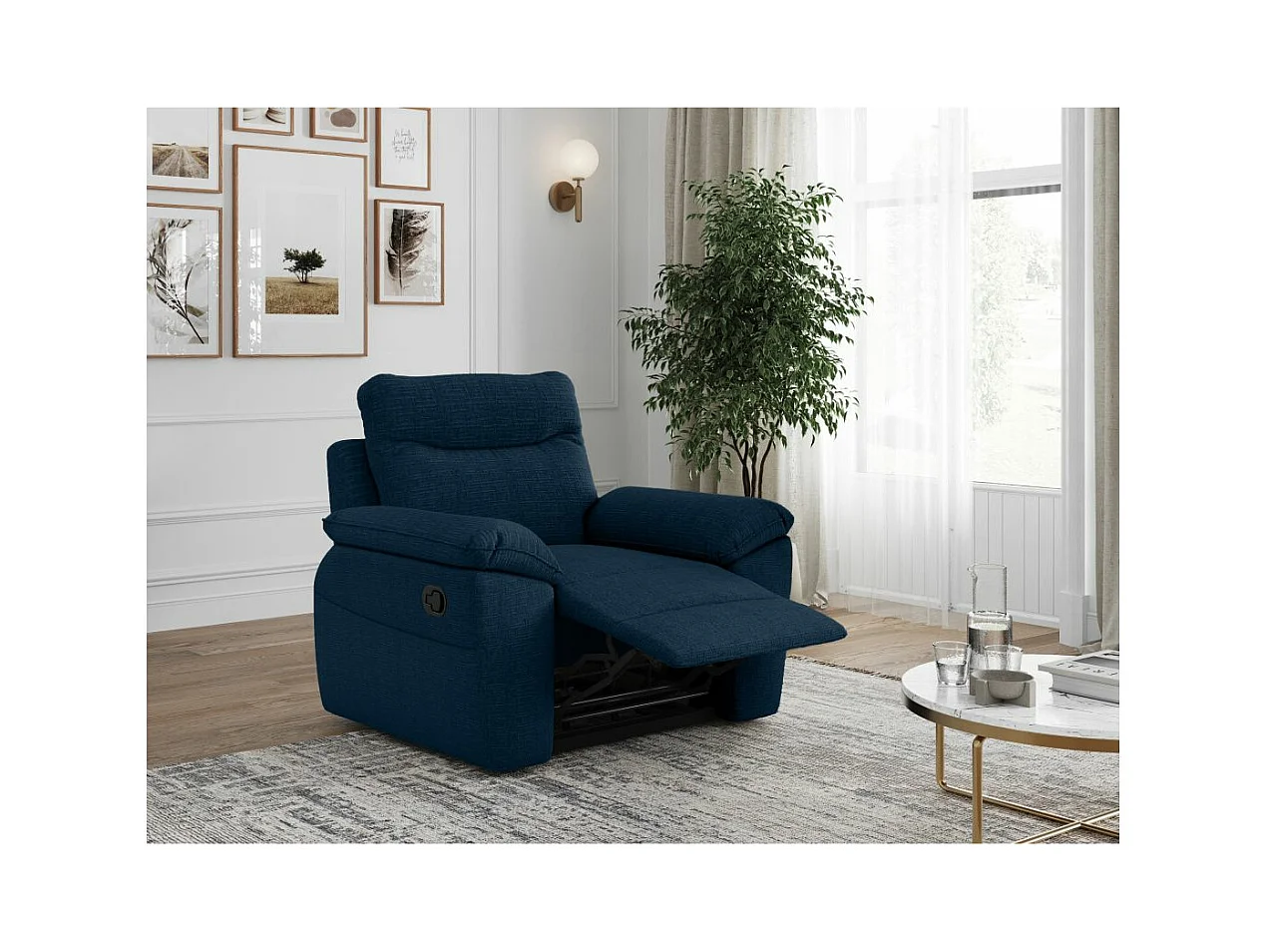 Fauteuil de relaxation manuel Ross en tissu texturé 3D - Bleu foncé - L101 x P100 x H102cm - Loungitude