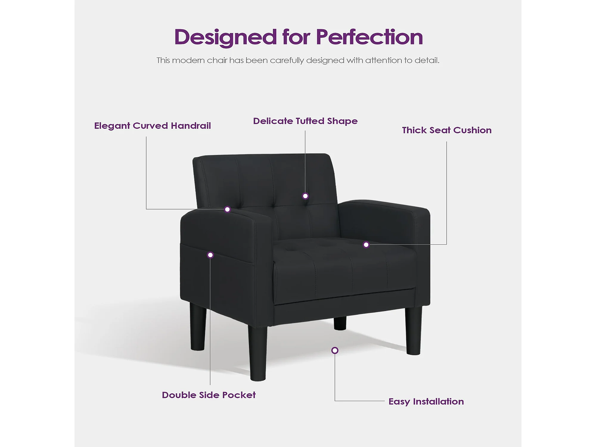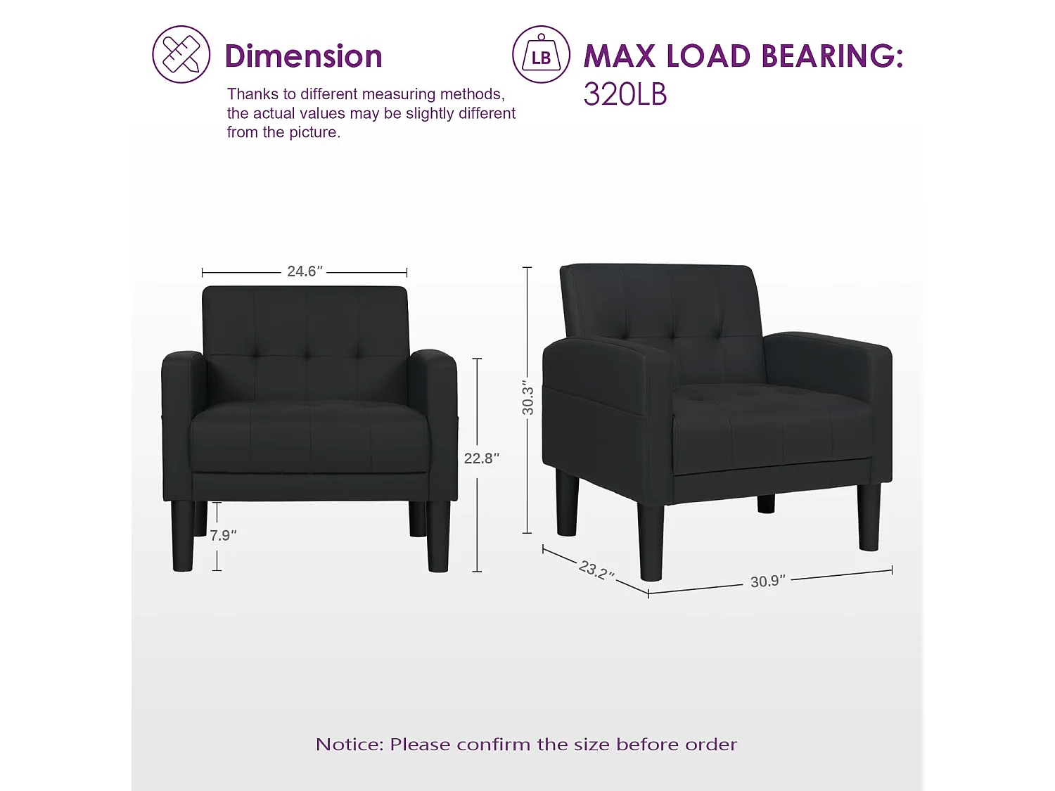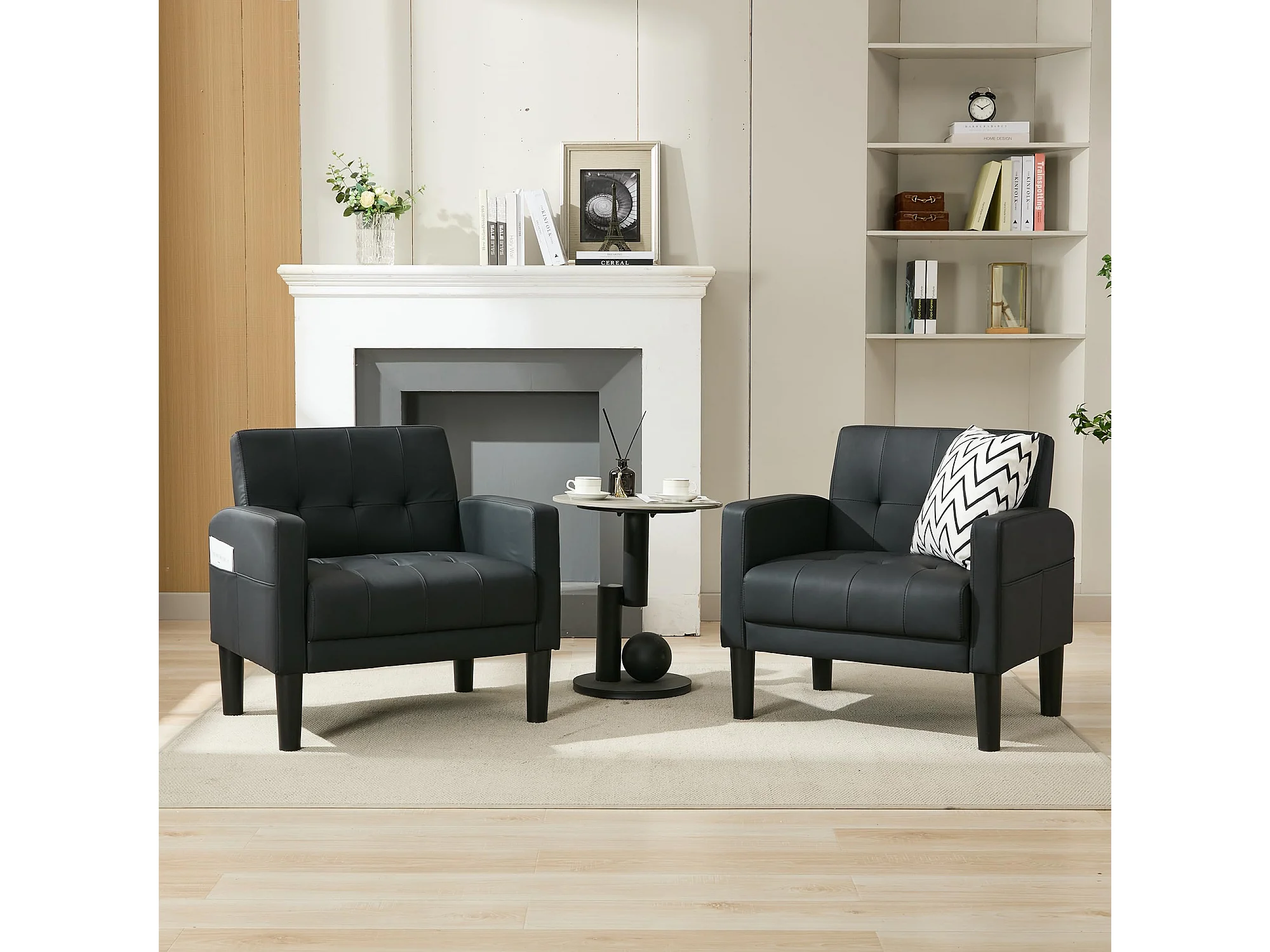 Fauteuil de Salon Lot de 2 Moderne Canapé 1 Place Confortable Fauteuil Relax avec Coussins pour Salon Cadre en Bois Fauteuil Lot de 2 Noir