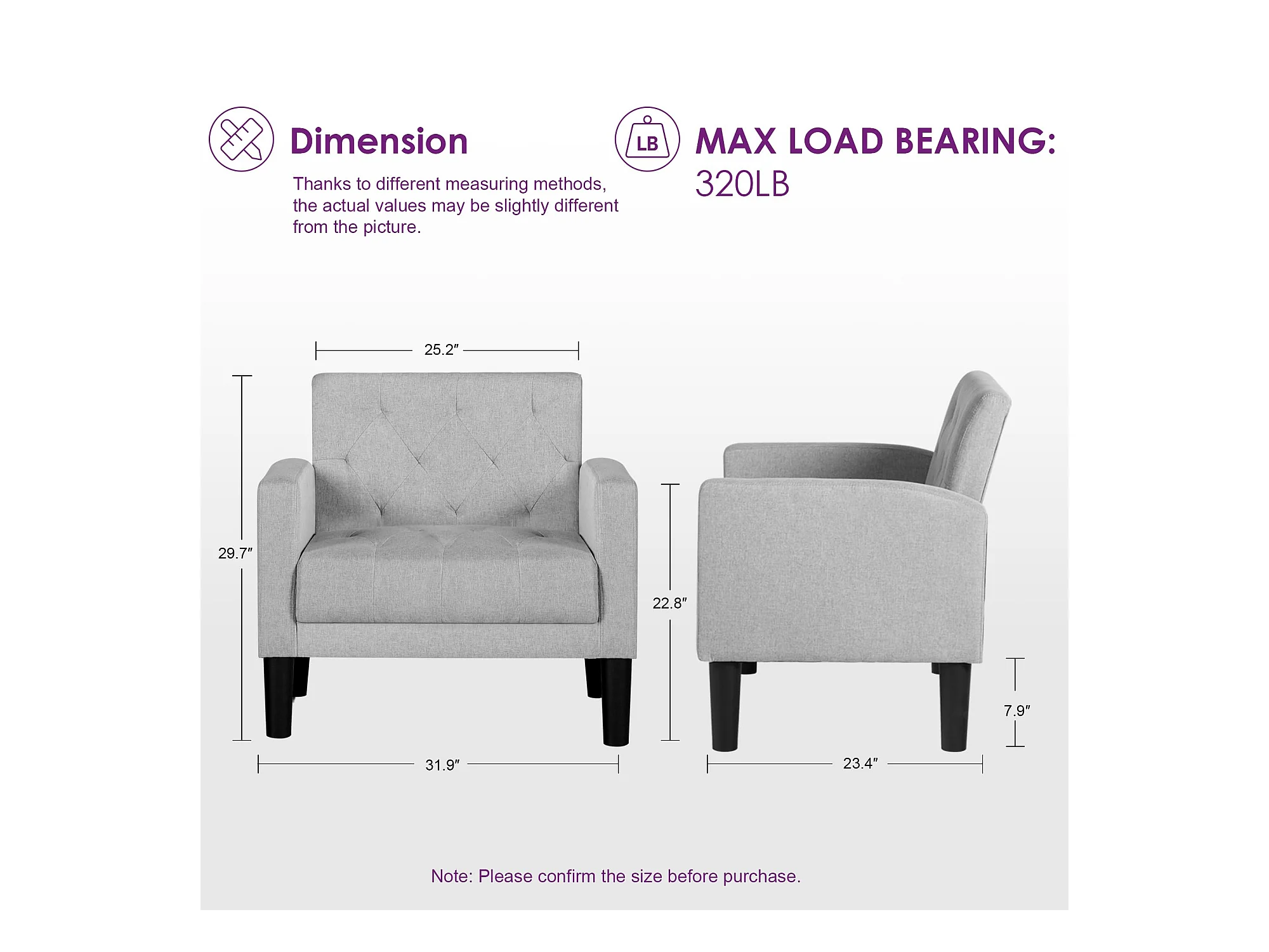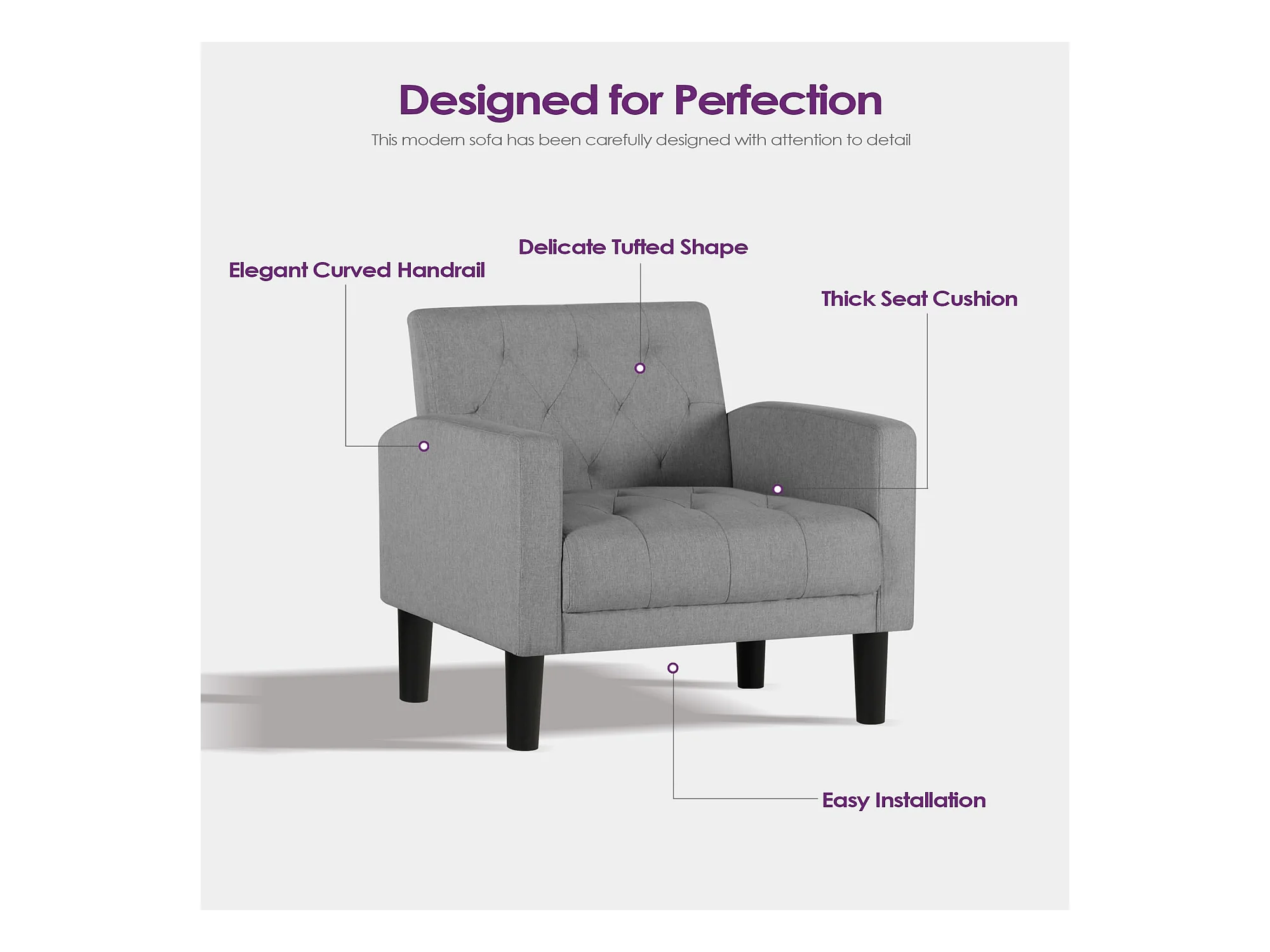 Fauteuil de Salon Lot de 2 Style Mid-century Canapé 1 Place avec Coussins Confortable Fauteuil Relax pour Salon Cadre en Bois Fauteuil Lot de 2 (Gris clair)