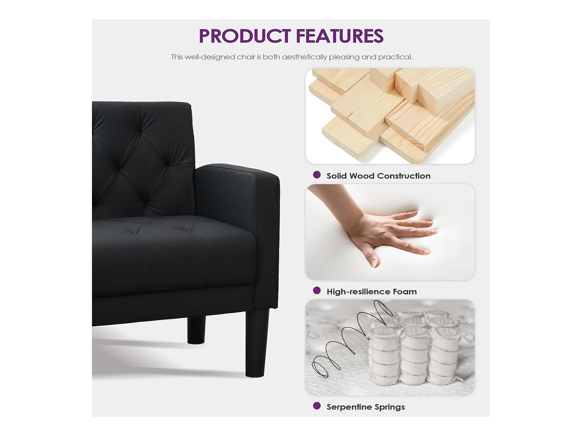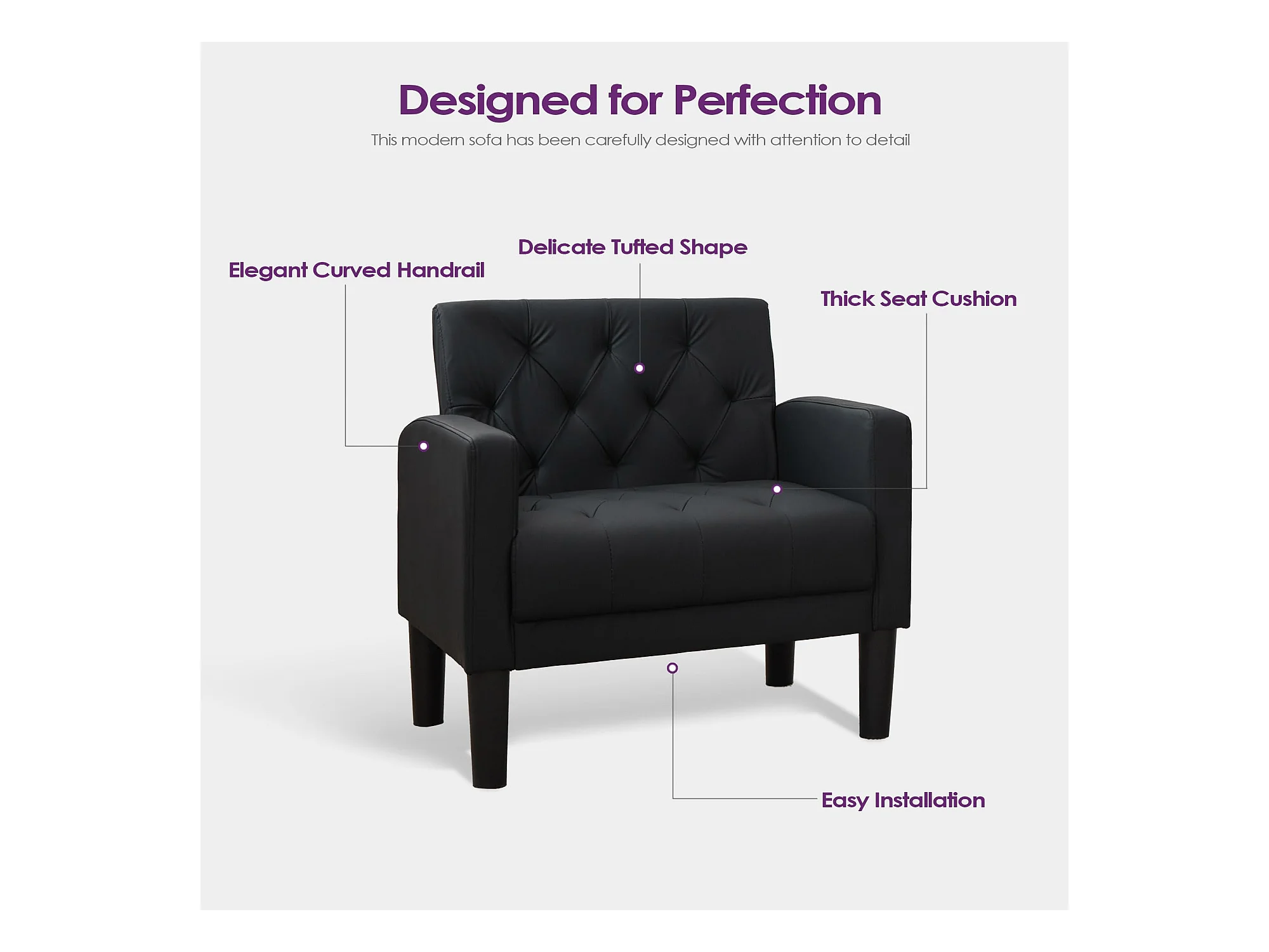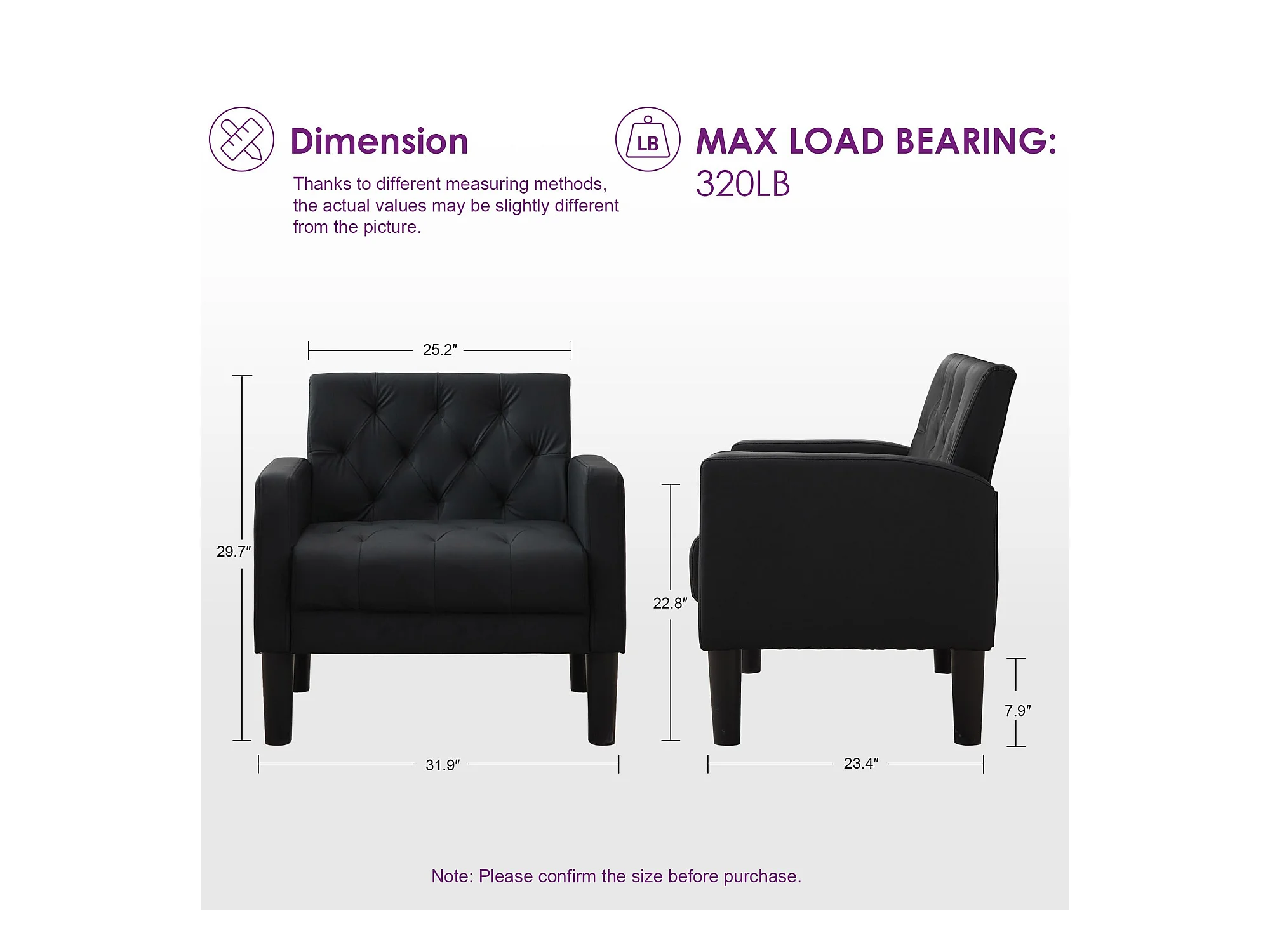 Fauteuil de Salon Lot de 2 Style Mid-century Canapé 1 Place avec Coussins Confortable Fauteuil Relax pour Salon Cadre en Bois Fauteuil Lot de 2 (Noir)