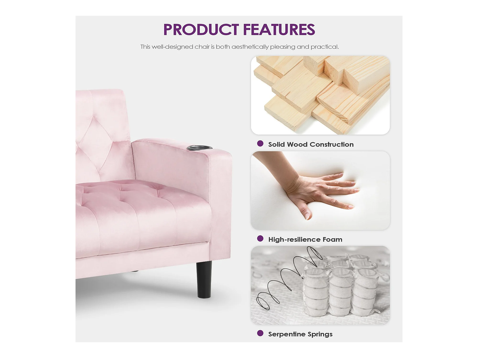 Fauteuil de Salon Lot de 2 Style Mid-century Canapé 1 Place avec Coussins Confortable Fauteuil Relax pour Salon Cadre en Bois Fauteuil Lot de 2 (Rose)