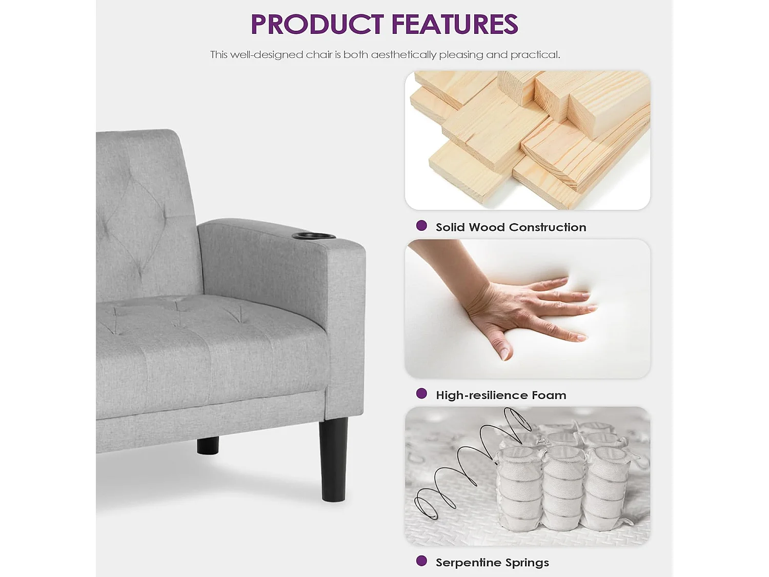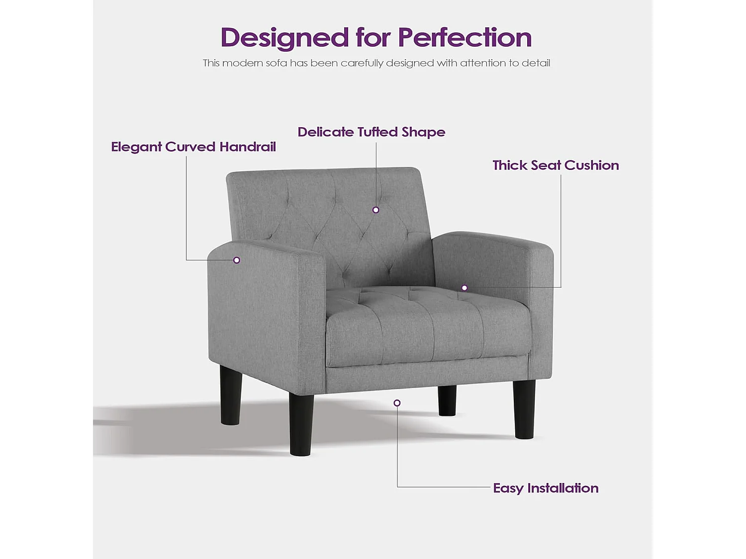 Fauteuil de Salon Style Mid-century Canapé 1 Place avec Coussins Confortable Fauteuil Relax pour Salon Cadre en Bois Fauteuil (Gris clair)