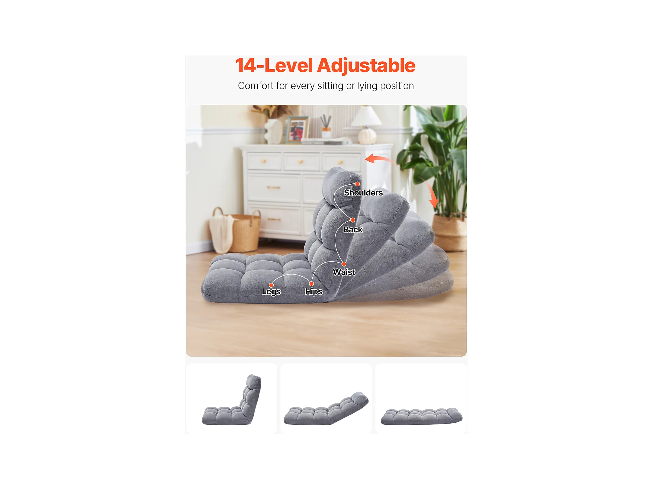 Fauteuil de Sol SucceBuy, Fauteuil Pliant en Mousse Recyclée, Fauteuil Canapé Pliant avec 14 Positions Réglables, Gris