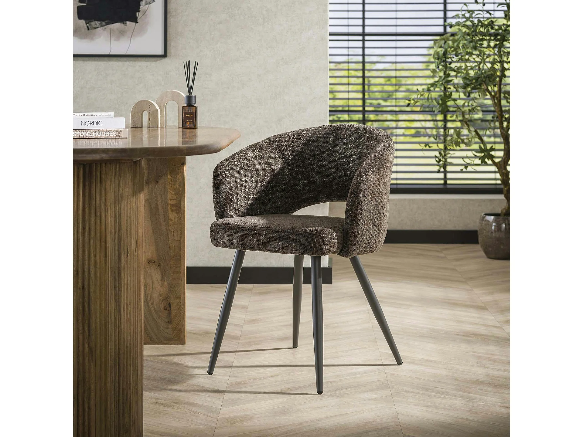Fauteuil de table en velours tissé chocolat avec dossier ouvert (lot de 2) GALWAY