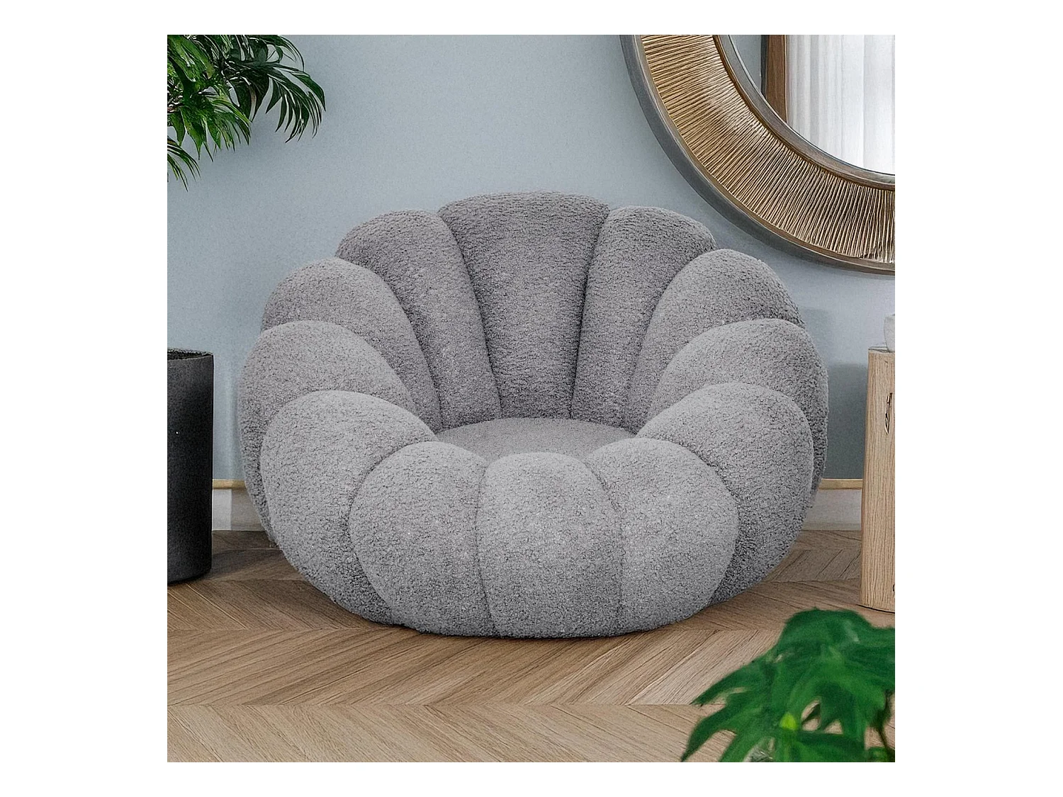 Fauteuil design coquillage Arielina Tissu bouclette Gris