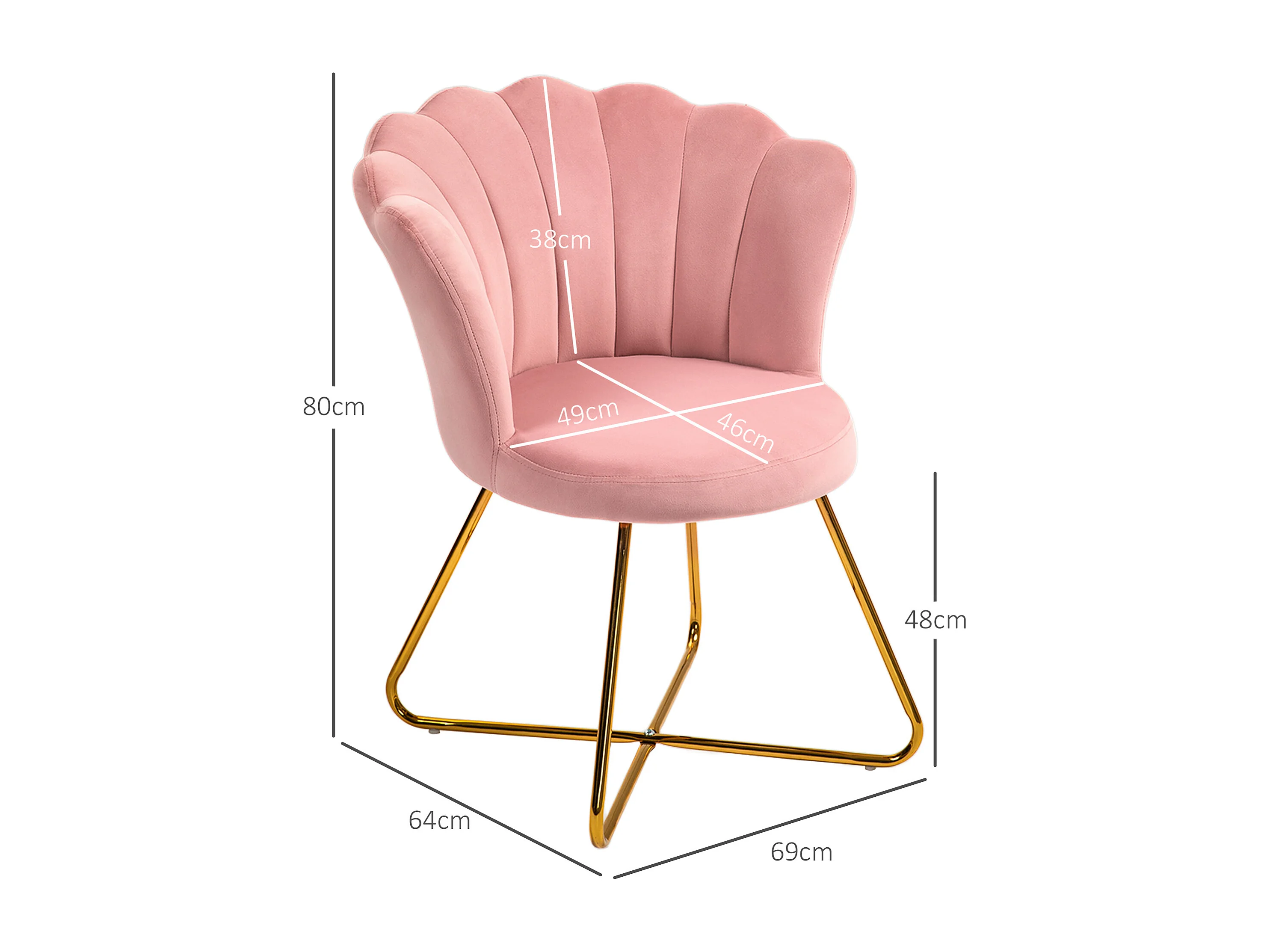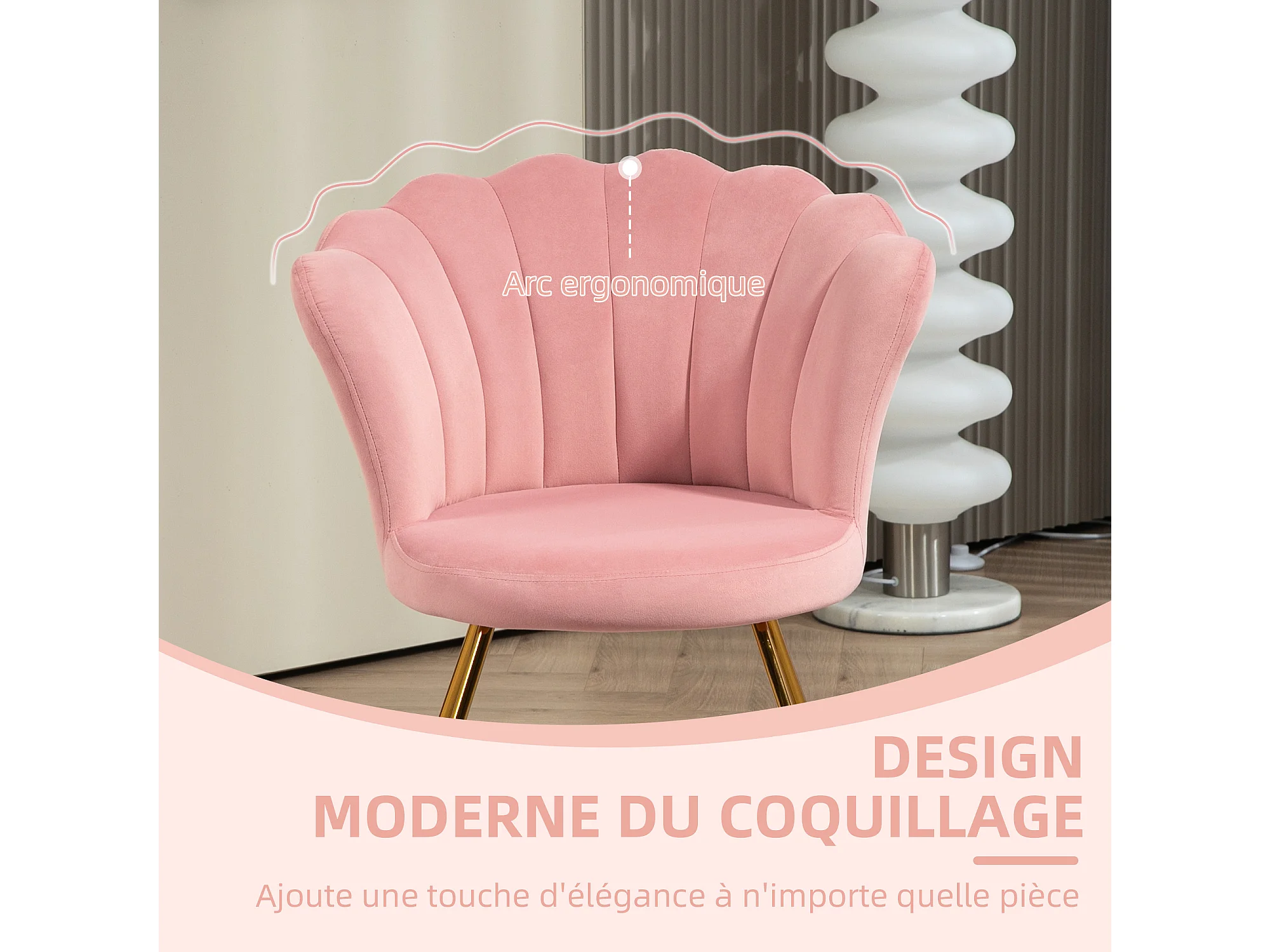 Fauteuil design coquillage piètement acier doré velours rose poudré