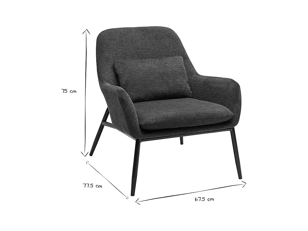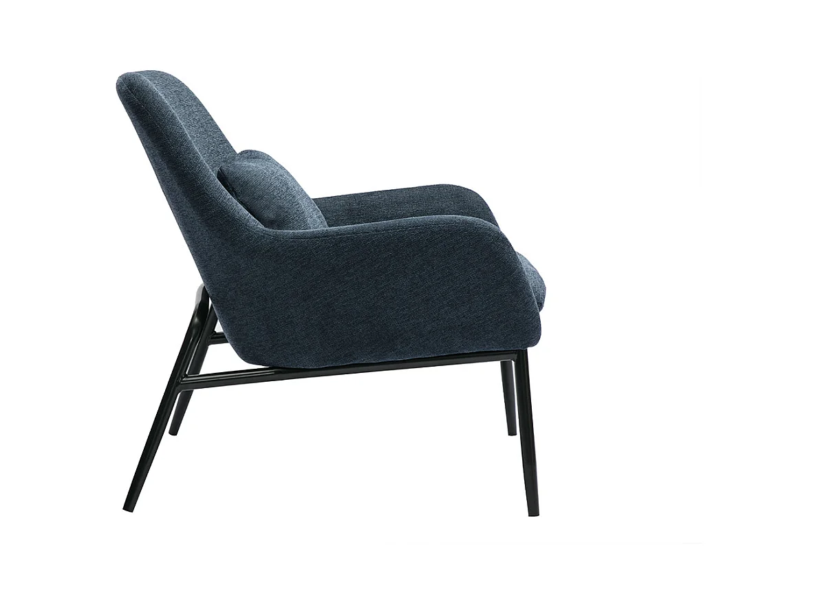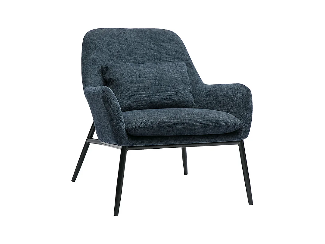 Fauteuil design en tissu effet velours texturé bleu foncé et métal noir MAXINE