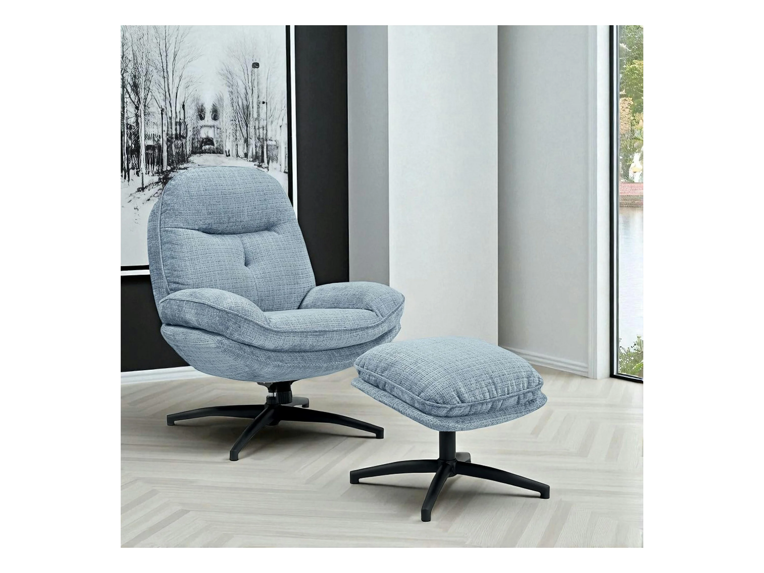 Fauteuil détente bleu acier pivotant avec repose-pieds IENA