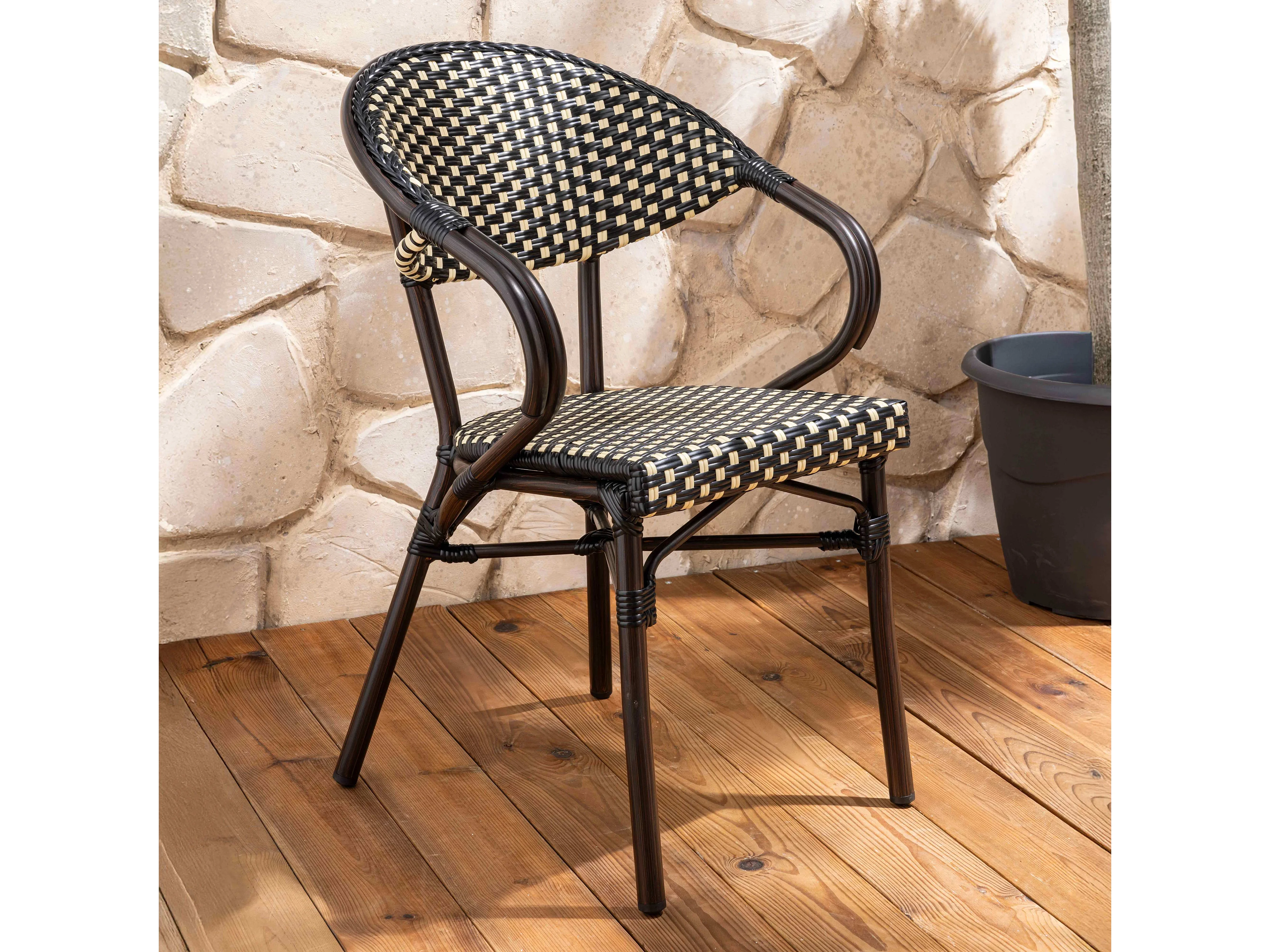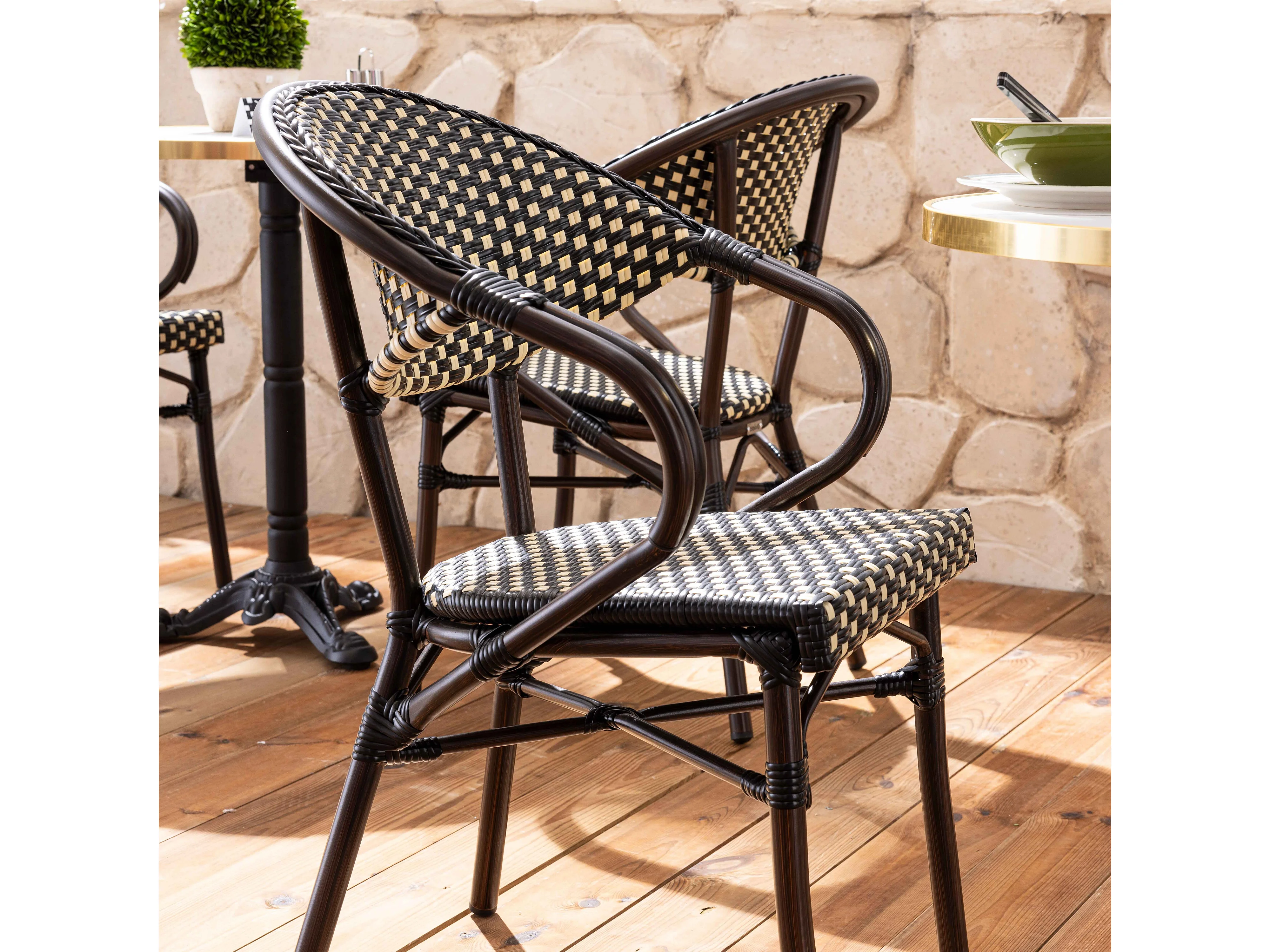 Fauteuil de terrasse bistrot parisien en aluminium et rotin noir