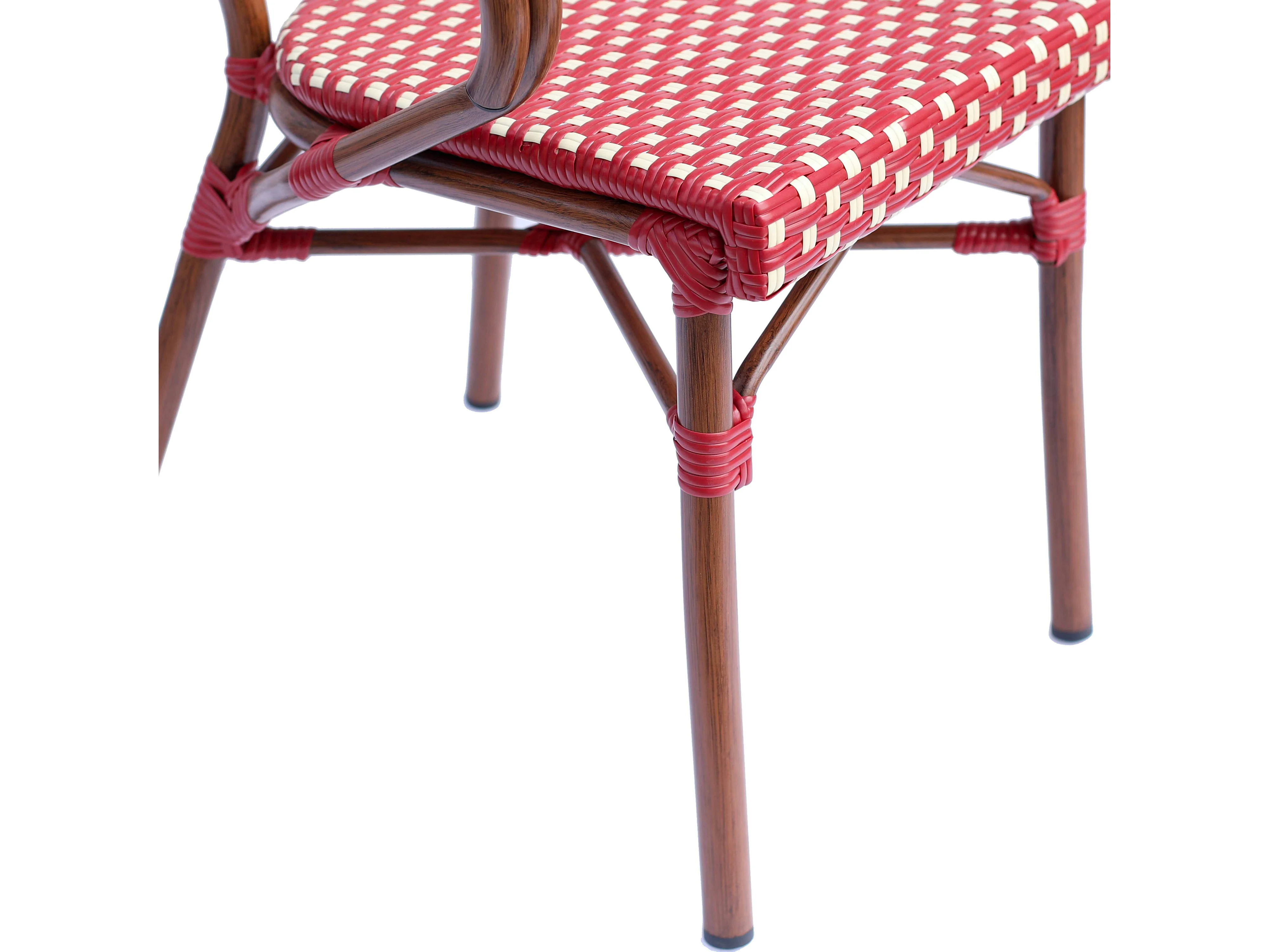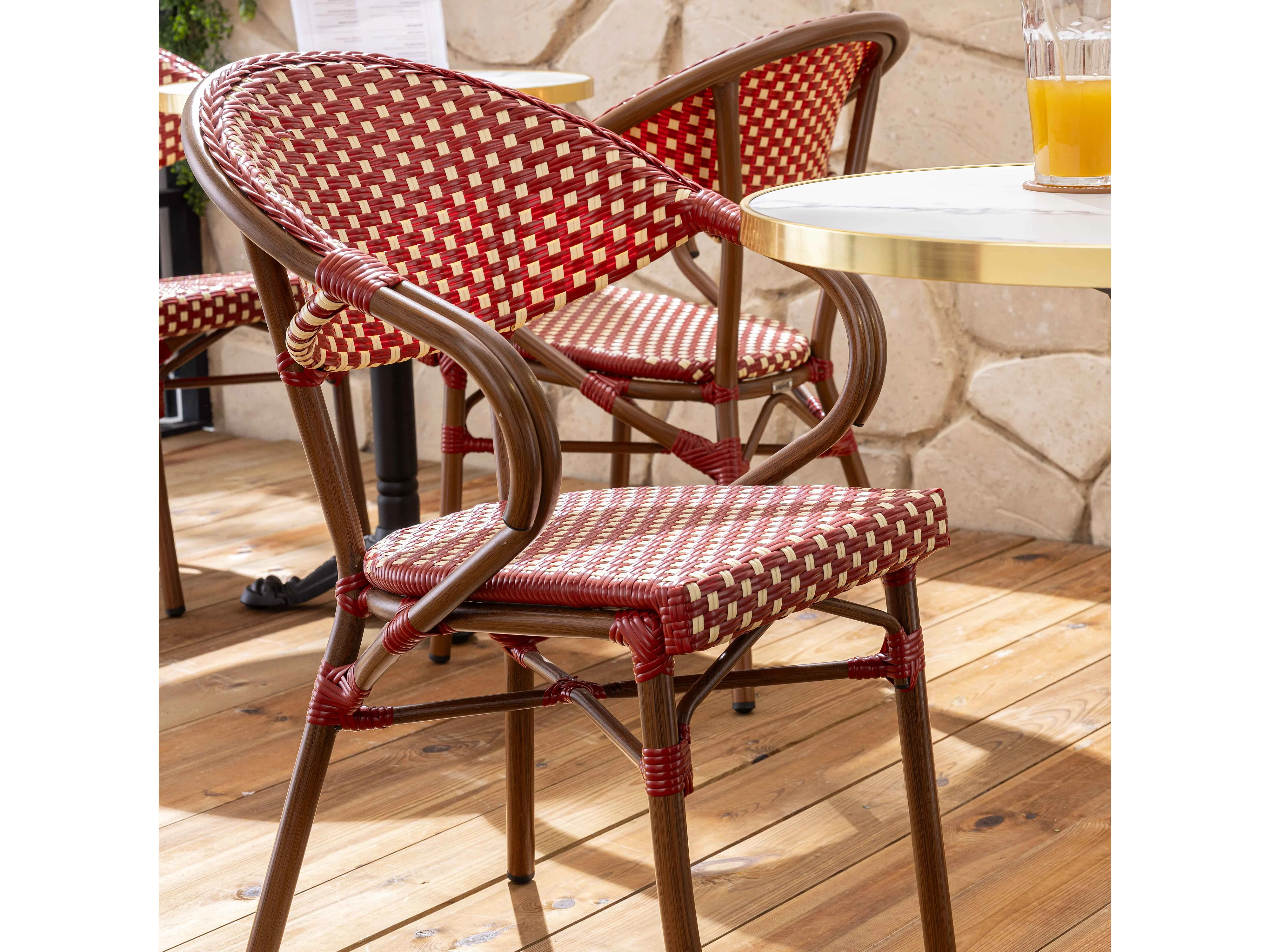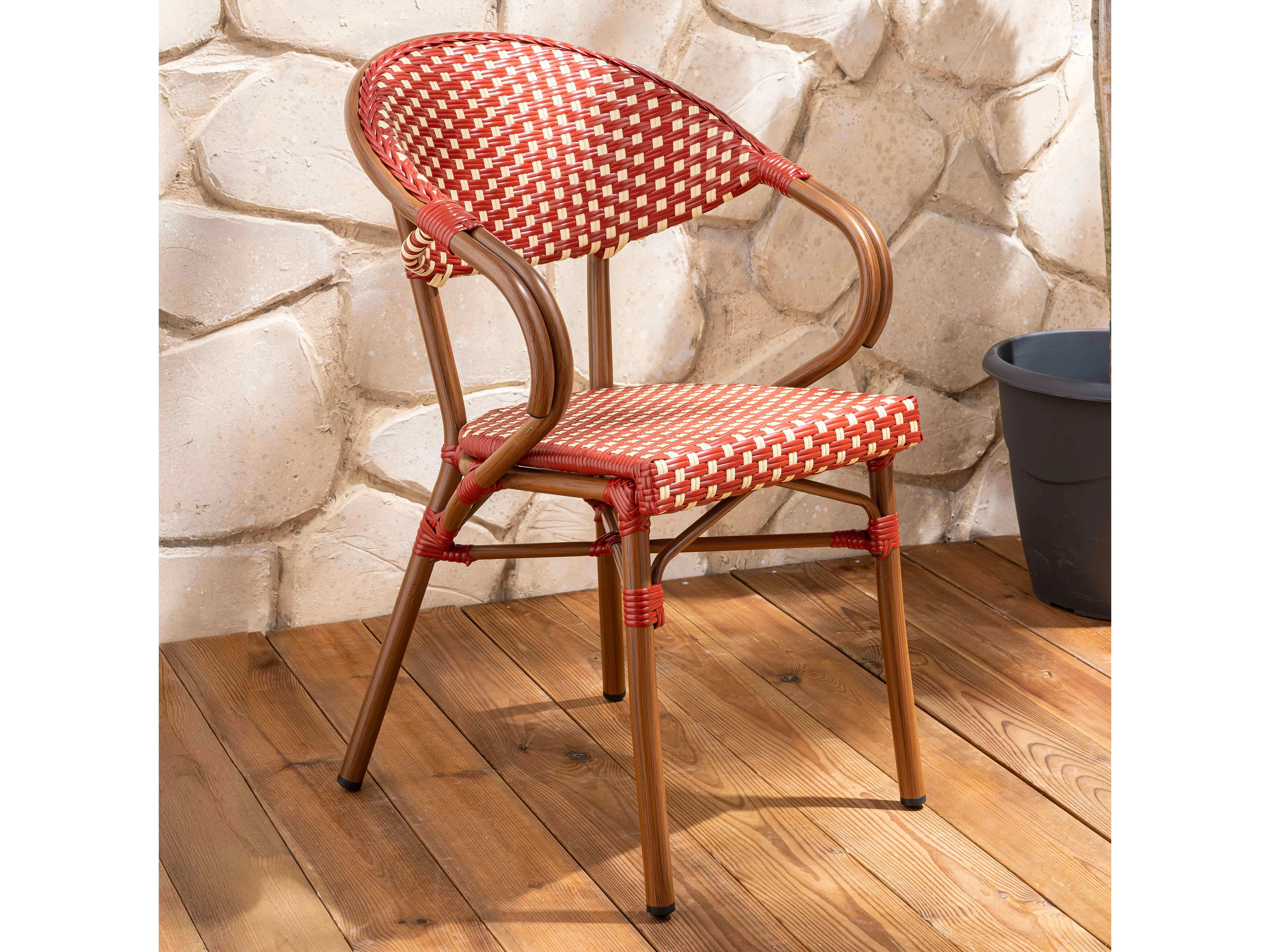 Fauteuil de terrasse bistrot parisien en aluminium et rotin rouge