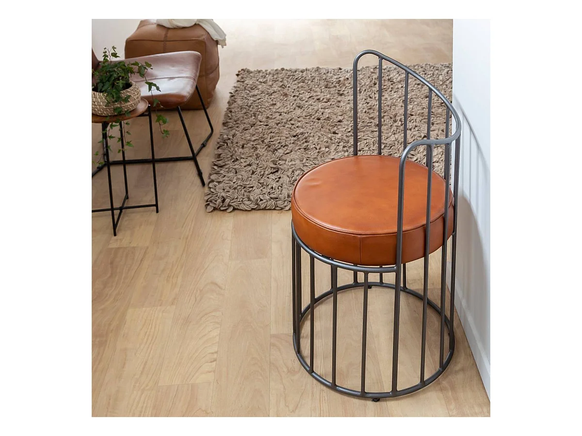 Fauteuil rétro en Cuir Cognac et structure en Métal Noir