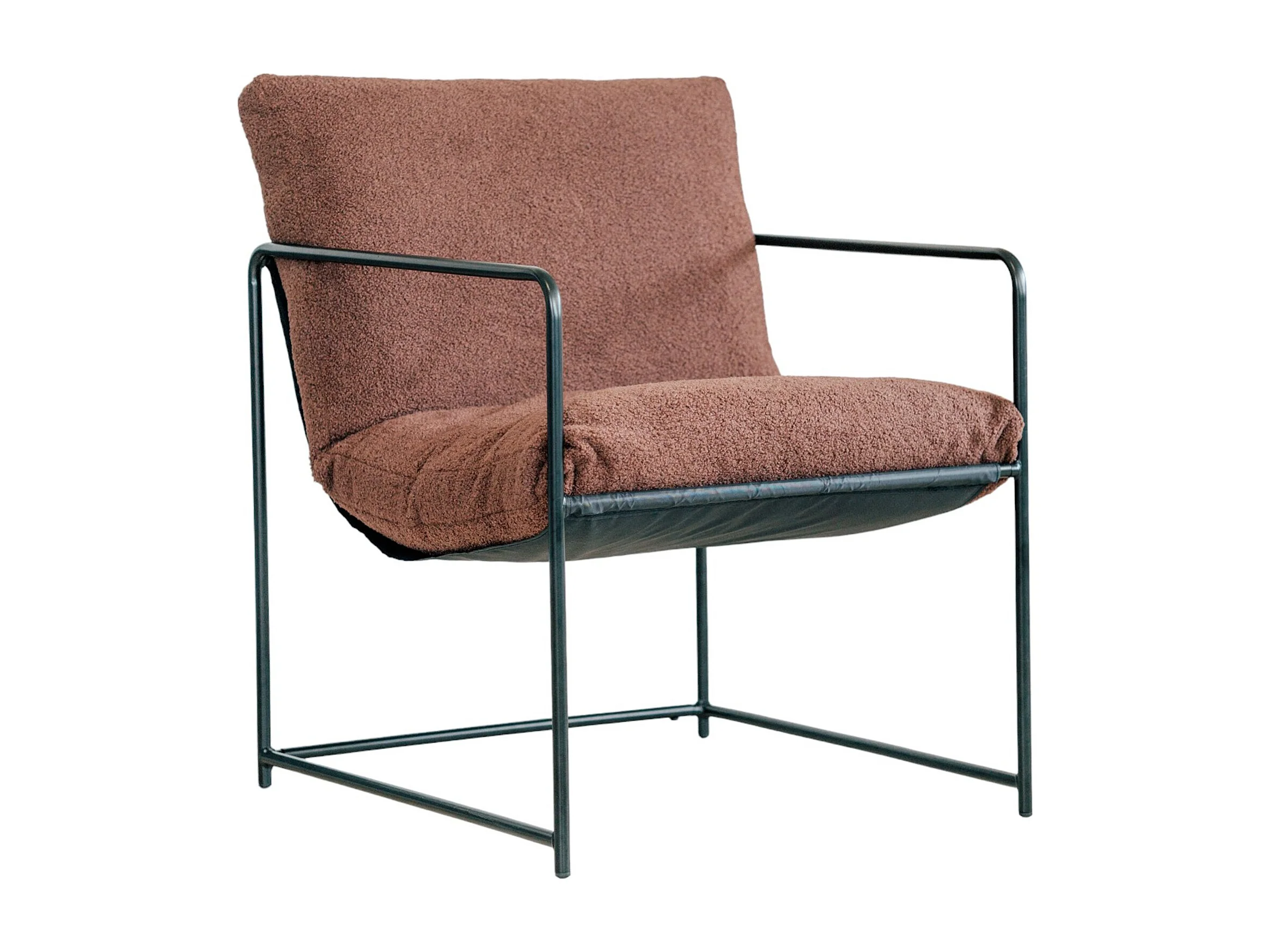 Fauteuil en peuplier, Fauteuil recouvert de tissu bouclé, Chaise rembourrée, Assise avec accoudoirs en métal, 61x67h75 cm, Marron