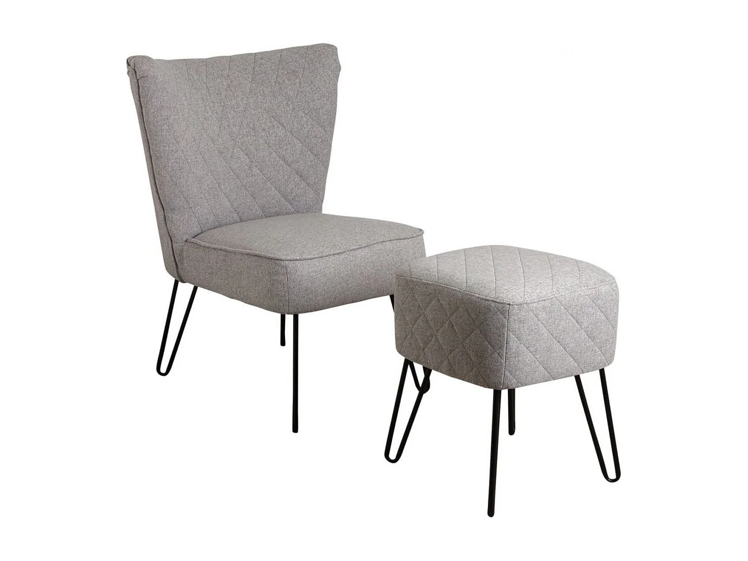Fauteuil en polyester gris et métal Capiton